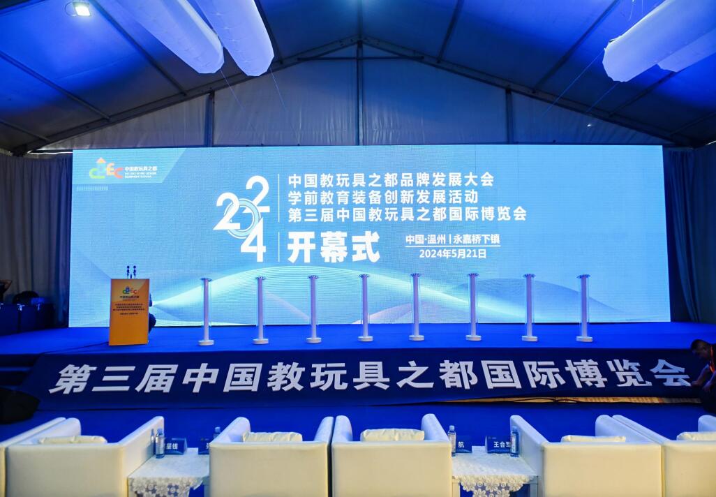 5 月 21 日25 日,两天主题活动+三天产品展示,为期五天, 以玩创世界 筑梦未来为主题的中国教玩具之都品牌发展大会、学前教育装备创新发展交流活动暨第三届中国教玩具之都国 际博览会在桥下国际玩具城隆重开幕。 本届博览会在上一届基础上,增设 A、B、C 馆三大展厅,展会 面积达 2 万余平方米。奇特乐、凯奇、永浪、立本、育……