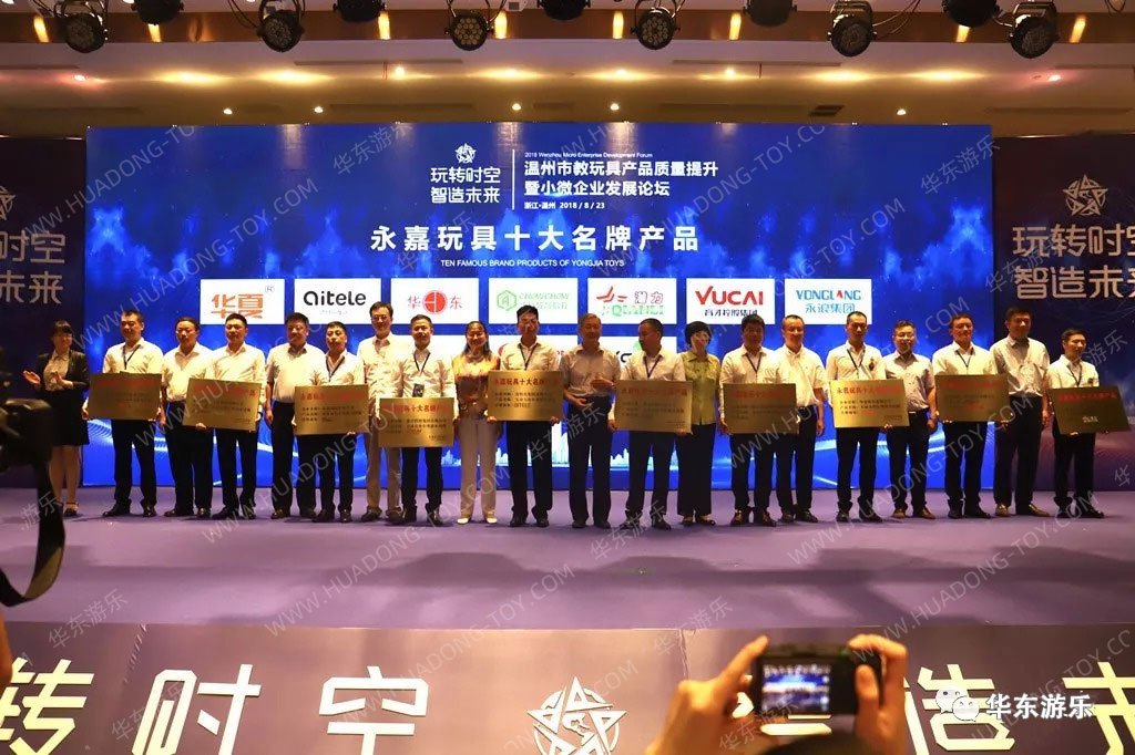 首届“永嘉玩具十大名牌产品”评选结果也在论坛上正式揭晓。奇特乐集团有限公司、育才控股集团有限公司、凯奇集团有限公司、永浪集团有限公司、浙江巧巧教育科技有限公司、立本集团有限公司、华夏游乐有限公司、333体育游乐设备有限公司制造的无动力类小型游乐设施产品以及贝旺玩具有限公司、浙江潜力玩具有限公司制造的塑胶玩具产品被评为“永嘉玩具十大名牌产品”。
