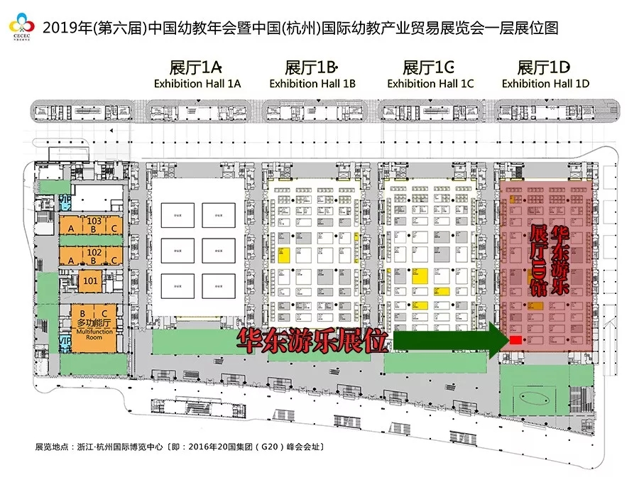 具体位置标示见下图(绿色箭头所指红色方框为333体育游乐展位):