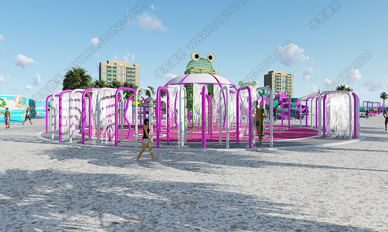 本案例设计灵感来源于童谣 小蝌蚪,圆溜溜,小尾巴,拖后头,东游游,西逛逛,好像许多黑豆豆。以青蛙的发育史为主要创作元素,引用小蝌蚪可爱的形象,结合青蛙的各种造型,打造小朋友们像小蝌蚪一样在水中自由自在的游玩与尽情的追逐的综合性水上乐园。整个水上乐园充满活泼奇特,让孩子们在玩的过程中激发了想象力,提高保护小动物的意识,起到寓教于乐的效果!