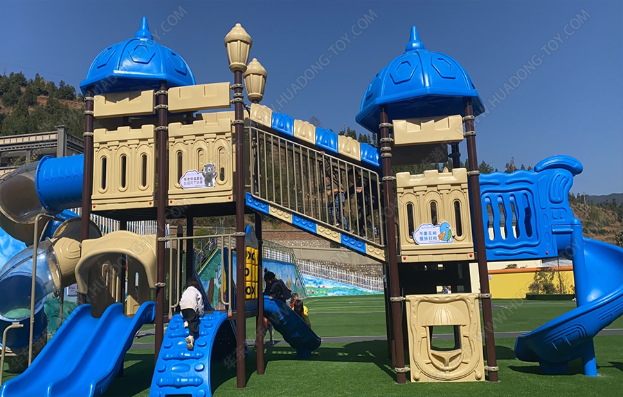 云南省曲靖市麒麟区富源县后所镇庆云幼儿园选用的是333体育游乐生产的欧韩城堡系列的户外滑梯,该滑梯有旋转滑梯、攀爬墙、直行滑梯、走梯、S滑桶等功能,能够幼儿园的日常教学和小朋友的玩耍,同时333体育游乐生产的游乐设备具有颜色鲜艳、经久耐用、品质优越等特点,深受广大消费者的喜爱。