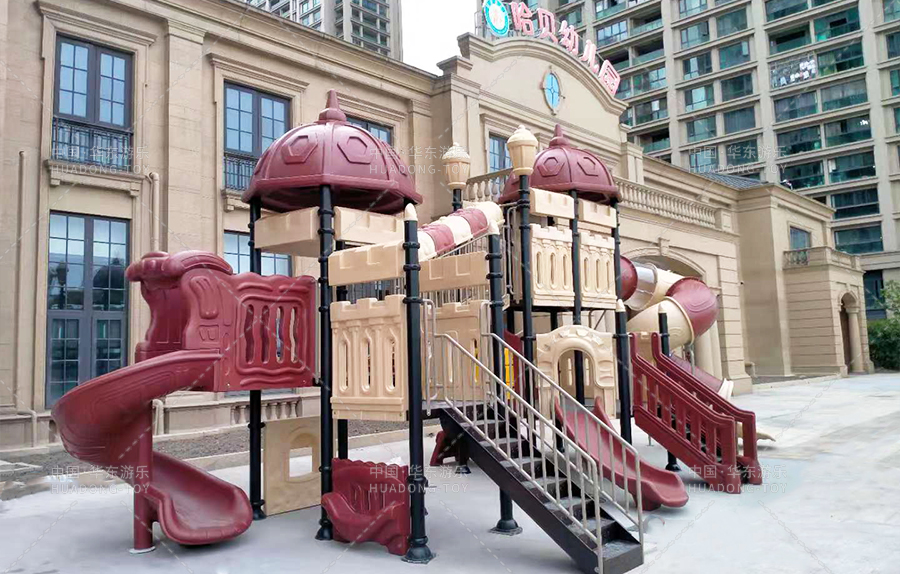 哈贝幼儿园选用的是333体育游乐设备生产的别墅屋系列滑梯,该滑梯具有选择滑梯、滑桶等功能,具有颜色艳丽、使用时间长等特点,深受广大顾客的喜爱。