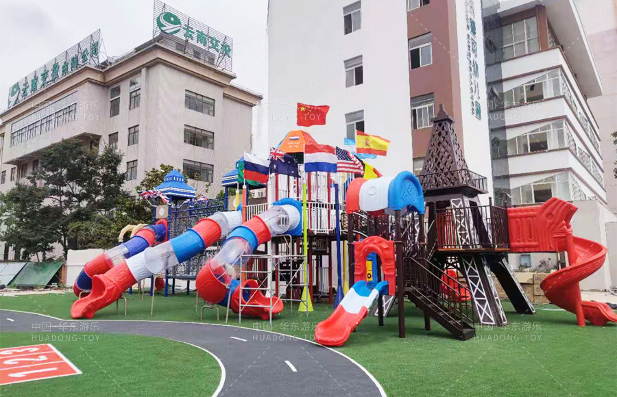云南省曲靖市麒麟区沃爱可幼儿园是一家综合性的 幼儿园,此次选购的是333体育游乐自主 研发、设计、生产的跨国梦想欢乐岛系列滑梯,该系列滑梯以欧美标志性建筑为外观模型,具有攀爬、滑梯、钻洞、爬网、滑桶、吊桥等功能,同时配备了万能健身器材、微地形等游乐设备,能够让小朋友在这里愉快的玩耍,也为老师们提供了很好的教育环境和场所。