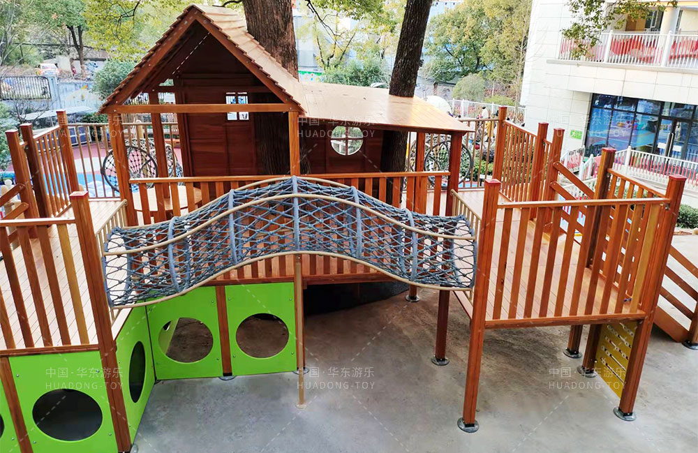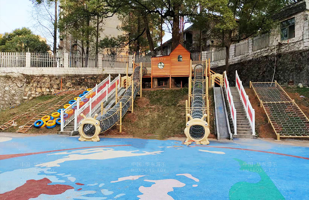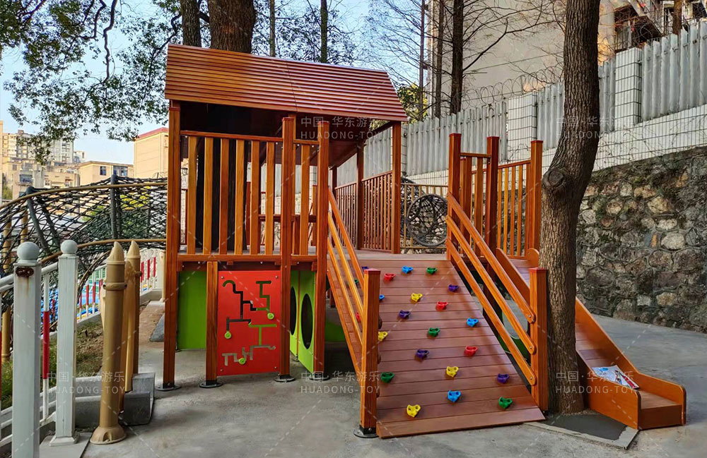 湖南省株洲市株机幼儿园是一家专业的学前教育培训机构,此次项目采用的是333体育游乐自主研发的木制非标游乐项目,整个项目设置的有木制游戏小屋,攀爬墙、攀网钻洞、轮胎攀爬等游乐设备。