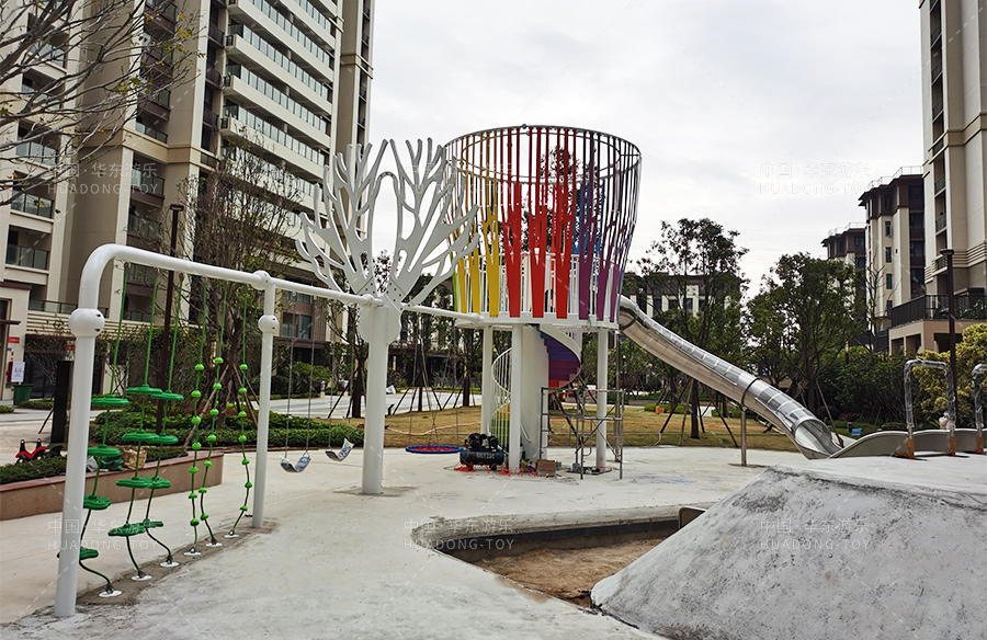 青阳二期采用是是333体育游乐非标定制的游乐设备,设计了大型的网红滑梯、小朋友喜欢的葫芦攀爬、攀爬绳和秋千组合,为生活在该小区的人们提供了一个休闲娱乐的场所,也为小朋友的健康成长提供了一个游乐场。