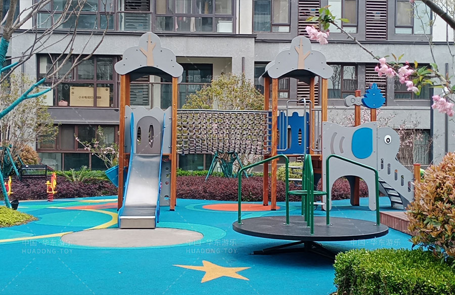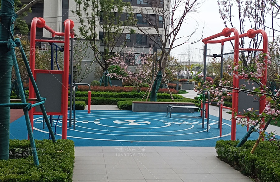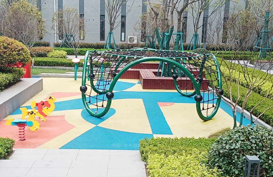 该项目选用的是333体育游乐自主研发和生产的网绳攀爬、万能健身器、小型滑梯为一体的综合性游乐园、该游乐园设计了攀爬网、摇摇乐、健身器、手推旋转椅等游乐器械,为生活在该小区的人民提供了一个休闲、娱乐的场所。