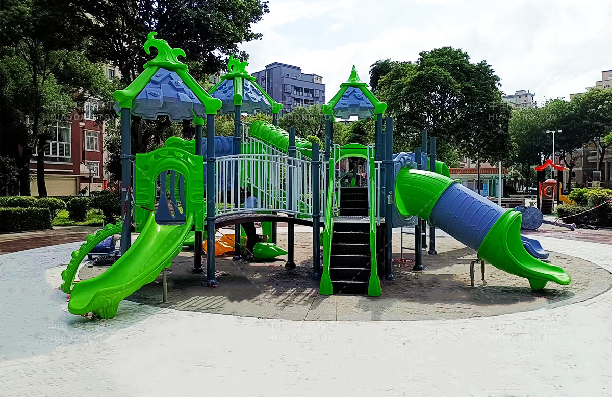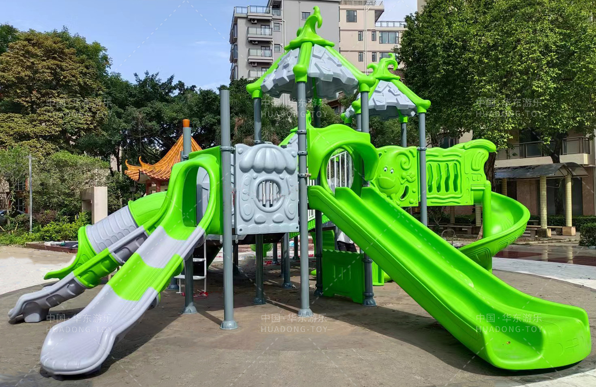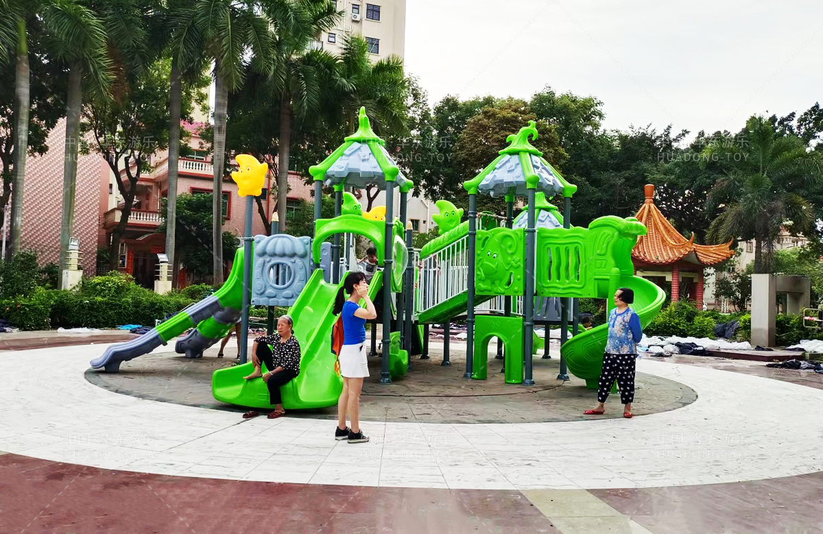 该小区选用的是333体育游乐自主研发和设计的具有攀爬、钻洞、滑梯为一体的魔法屋系列组合滑梯和动物园系列滑梯,让生活在该小区的人有一个休闲娱乐的场所。