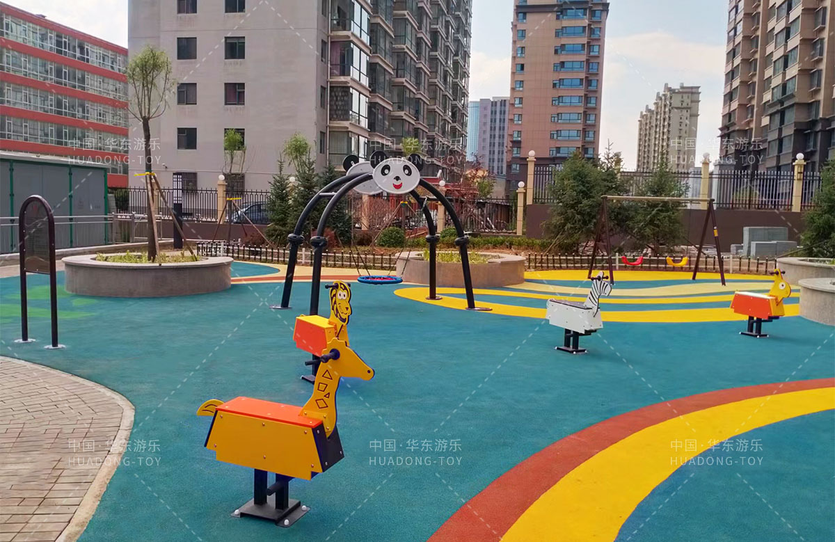 山西省晋中市和顺县滨河路盛世华府是一个优质的生活小区,该小区选用的是333体育有了自主研发和设计的森林系列滑梯为主要游乐设备、整个游乐场还添置了儿童摇摇乐、大熊猫秋千等游乐设备,为生活在这里的人们提供了一个休闲娱乐的场所。
