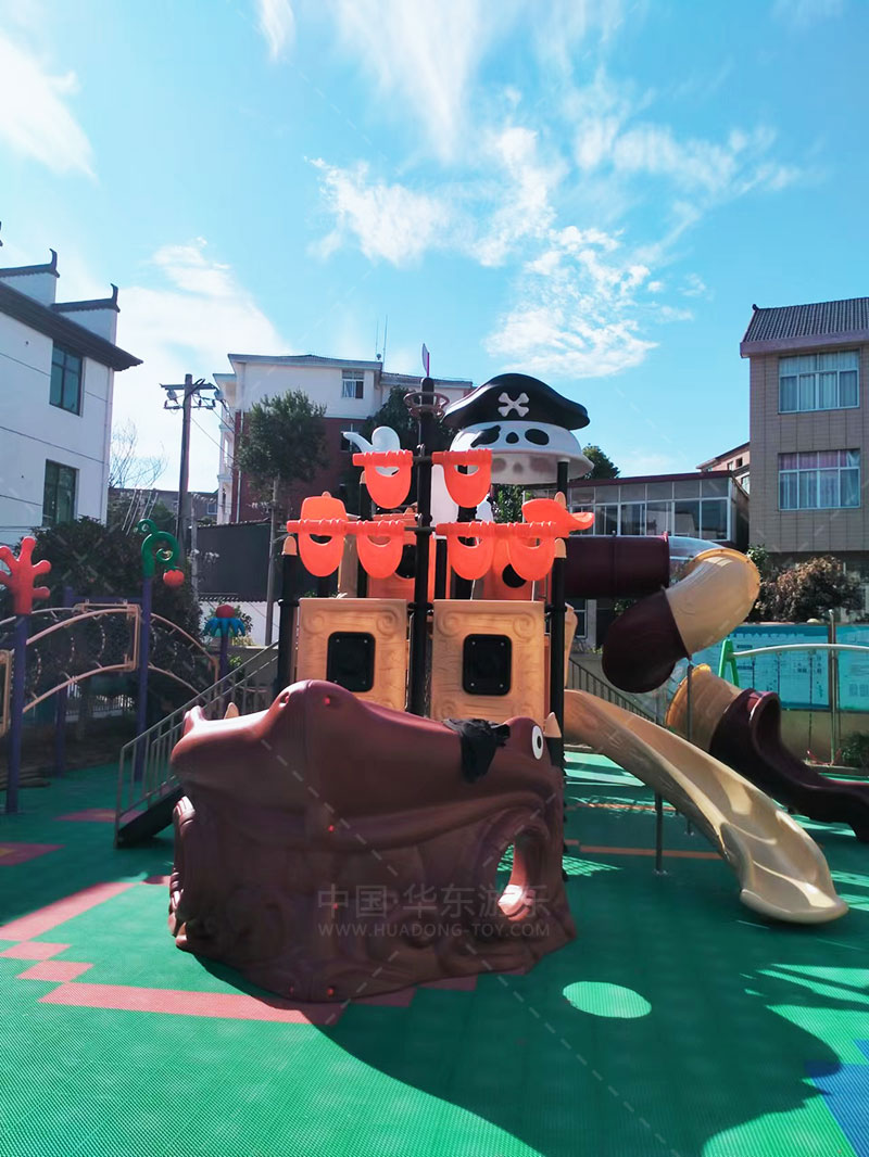 江西省上饶市玉山县四股桥中心幼儿园是一个专业的学前教育机构,为了更好的让孩子们有一个学习、娱乐的场所,该项目选用的是333体育游乐自主研发和生产的海盗船系列组合滑梯,该滑梯具有主题性强,功能齐全、玩法多样、使用寿命长等特点,深受小朋友们的喜爱。