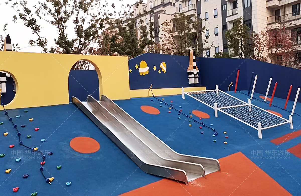 江苏南通海安碧桂园项目是一个高档的地产类游乐项目,该项目采用能量电池为设计主题,设计了小朋友喜爱的摇摇乐、沙池、微地形、攀爬网、攀爬绳、滑梯等游乐设备,为生活在该小区的孩子们提供了一个休闲娱乐的场所。