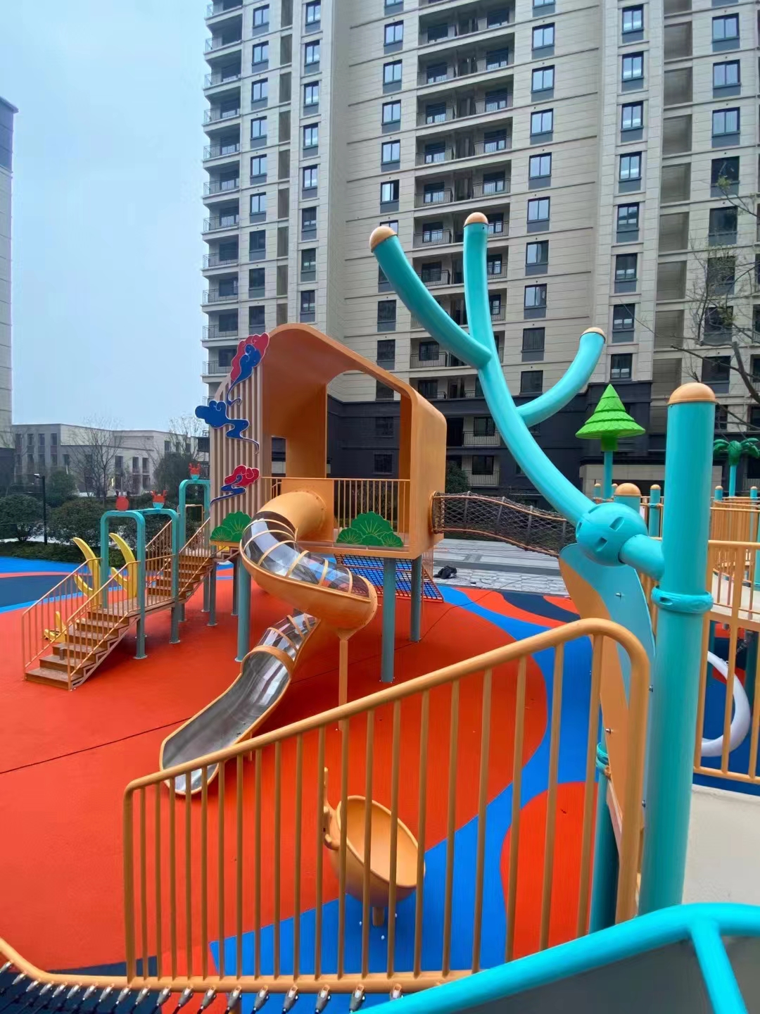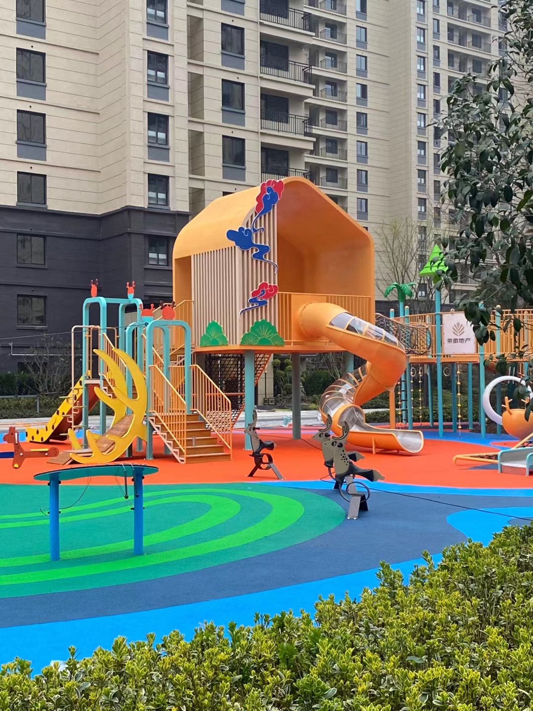 建投东方名府源著儿童游乐项目是333体育游乐生产的非标定制的主题性游乐设备,整个项目采用以森林麋鹿为设计主题,分别设计了攀爬网、钻洞、不锈钢滑梯、旋转椅、传声筒、秋千、脚踏平衡杆、攀爬梯等功能,为小朋友的健康成长提供了一个很好的游玩场所。