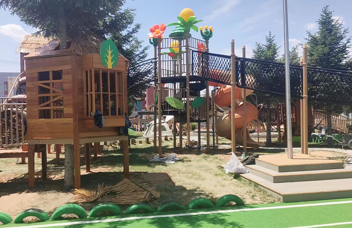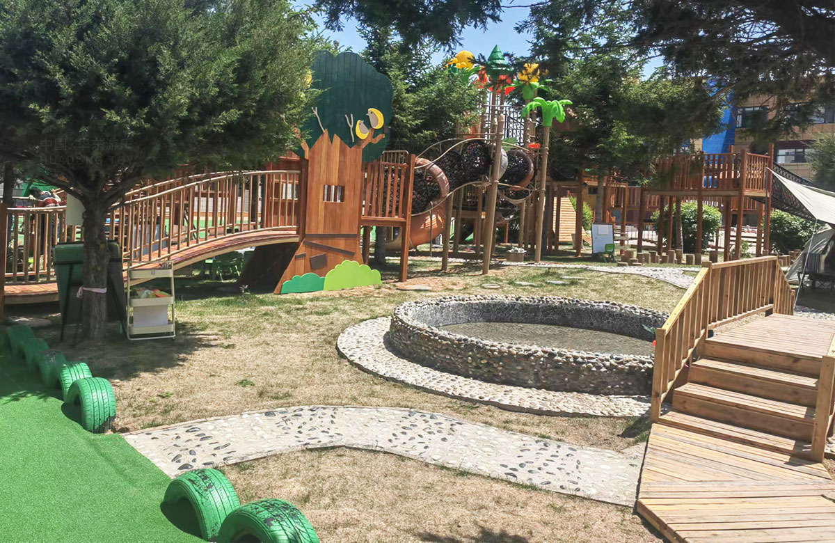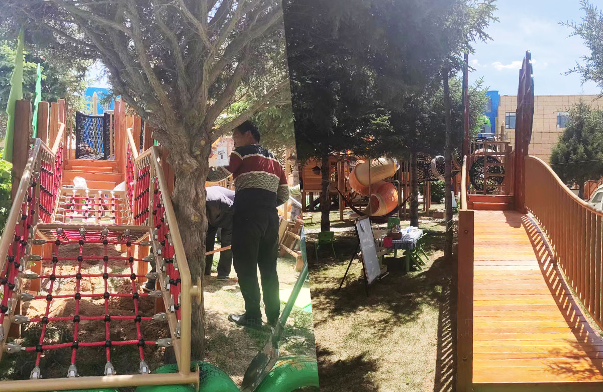 该幼儿园是一个专业性的学前教育培训机构,选用的是333体育游乐自主研发和设计的具有空中攀爬网、钻洞、空中栈道、游戏小屋、直行滑梯为一体的综合性 游乐设备,这些设备的选择不仅仅丰富了孩子们校园的生活,还很好的锻炼了小朋友的攀爬能力、四肢的协调能力、攀爬过程中的平衡能力,同时也促进了孩子们大小脑的发育。