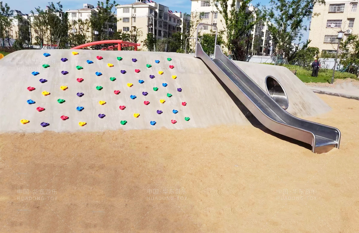 • 该项目是一个综合的游乐场地,为了更好的促进人民生活水平,增强全民的运动的发展,该游乐场设置了小朋友喜欢的大型组合滑梯、儿童摇摇乐、攀爬网、组合秋千、传声筒、攀爬墙、休闲厅等游乐设备,不仅仅丰富了居民的出行生活,也为小朋友的健康成长提供了保障。