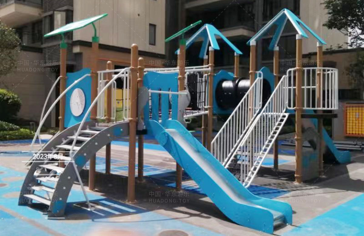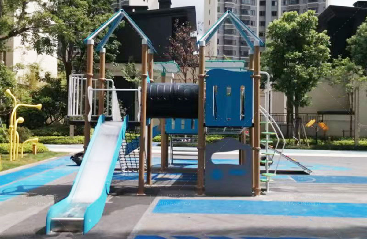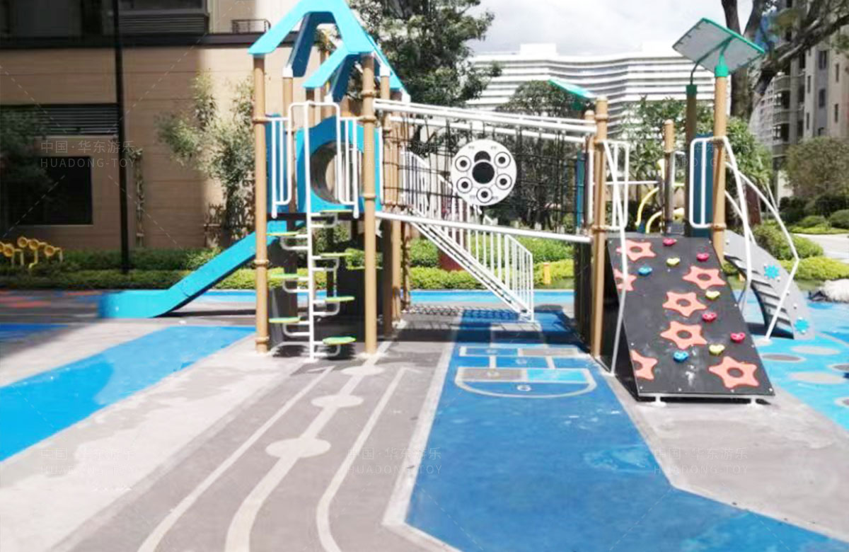 该项目选用的是333体育游乐自主研发和设计的PE板系列组合滑梯,该滑梯是一款具备了攀爬墙、攀爬网、攀爬梯、空中网桥、不锈钢滑梯等功能为一体的综合性游乐设备,除此之外还设置了小朋友喜欢的传声筒、攀爬墙、翻翻乐和成年健身器等设备,不仅丰富人们的休闲生活,也为该小区增加了更多的生机与活力。