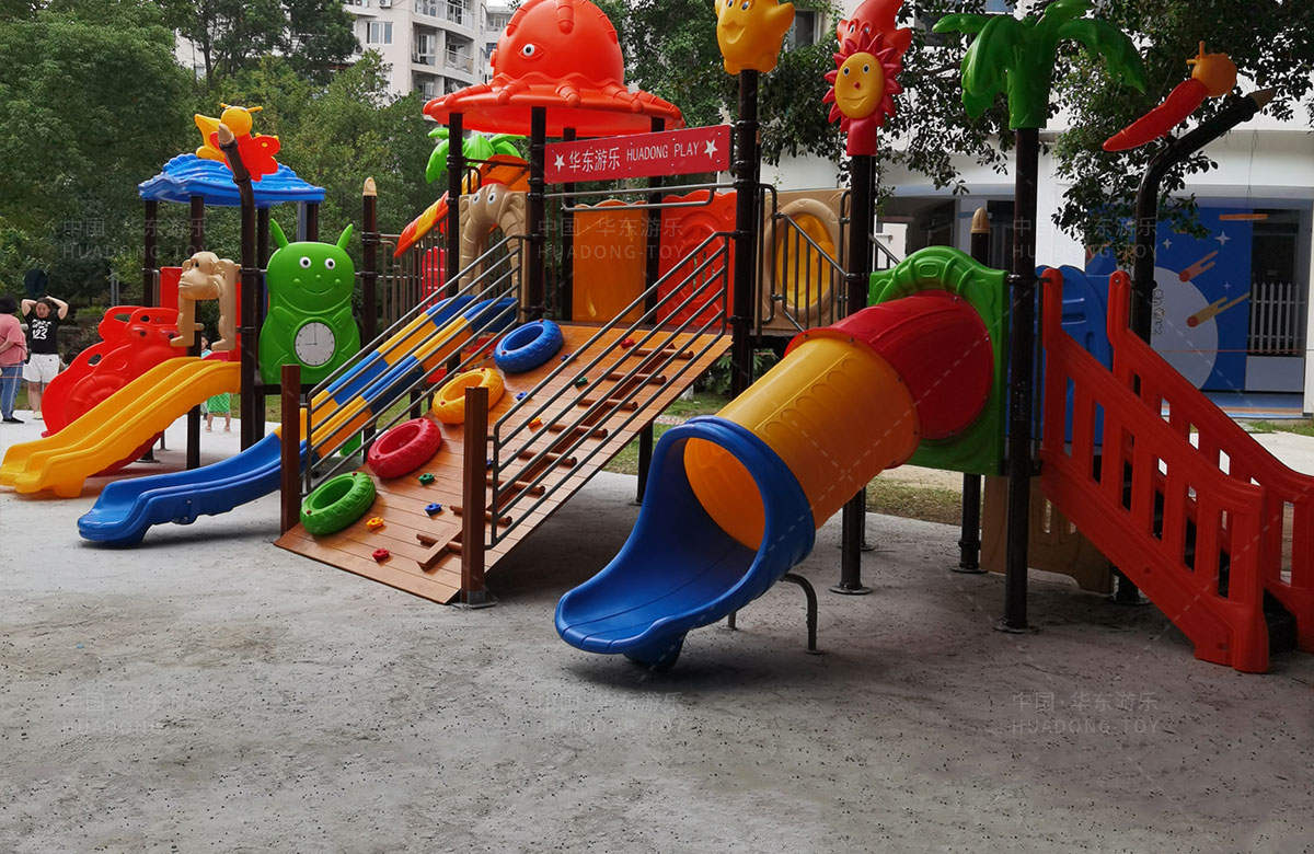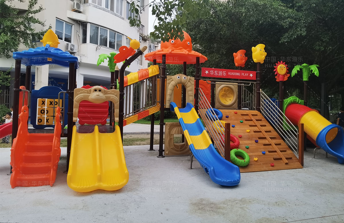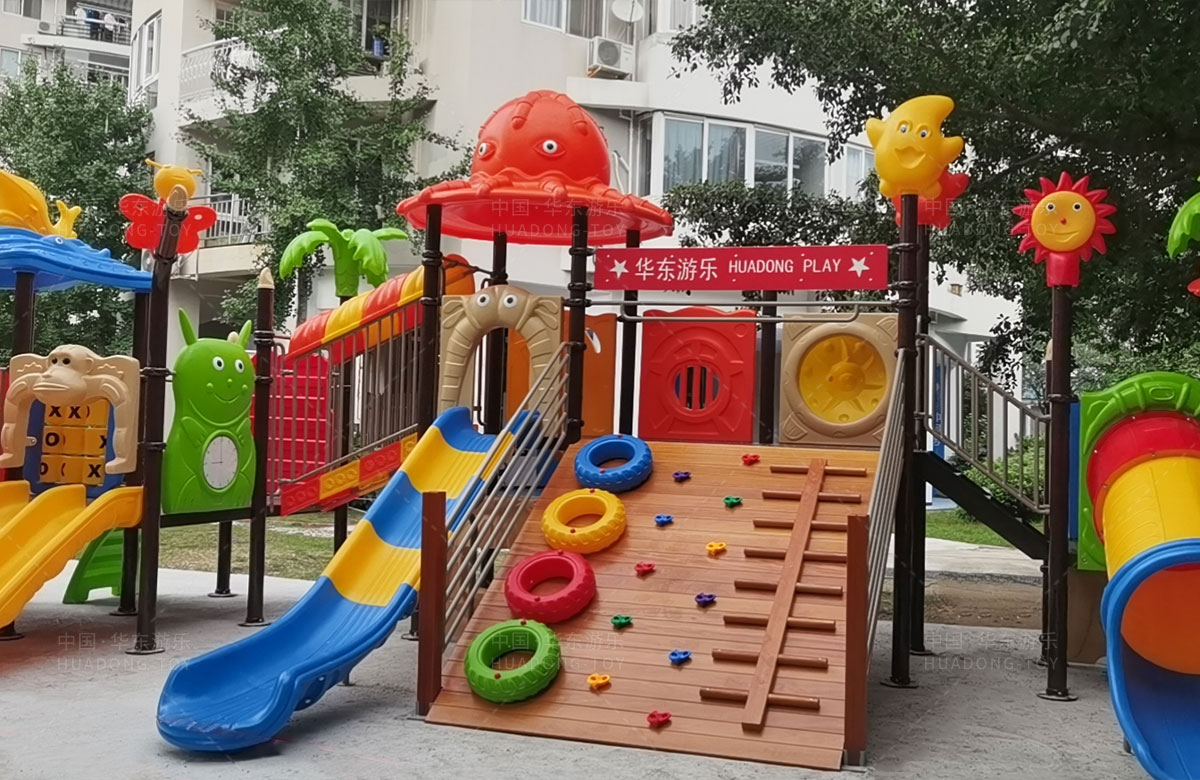 该小区选用的是333体育游乐自主研发和设计的大自然系列组合滑梯,是一款具备了攀爬网、攀爬梯、直行滑梯、滑筒等功能为一体的综合性游乐设备,能够很好的为小朋友提供休闲娱乐的场所。