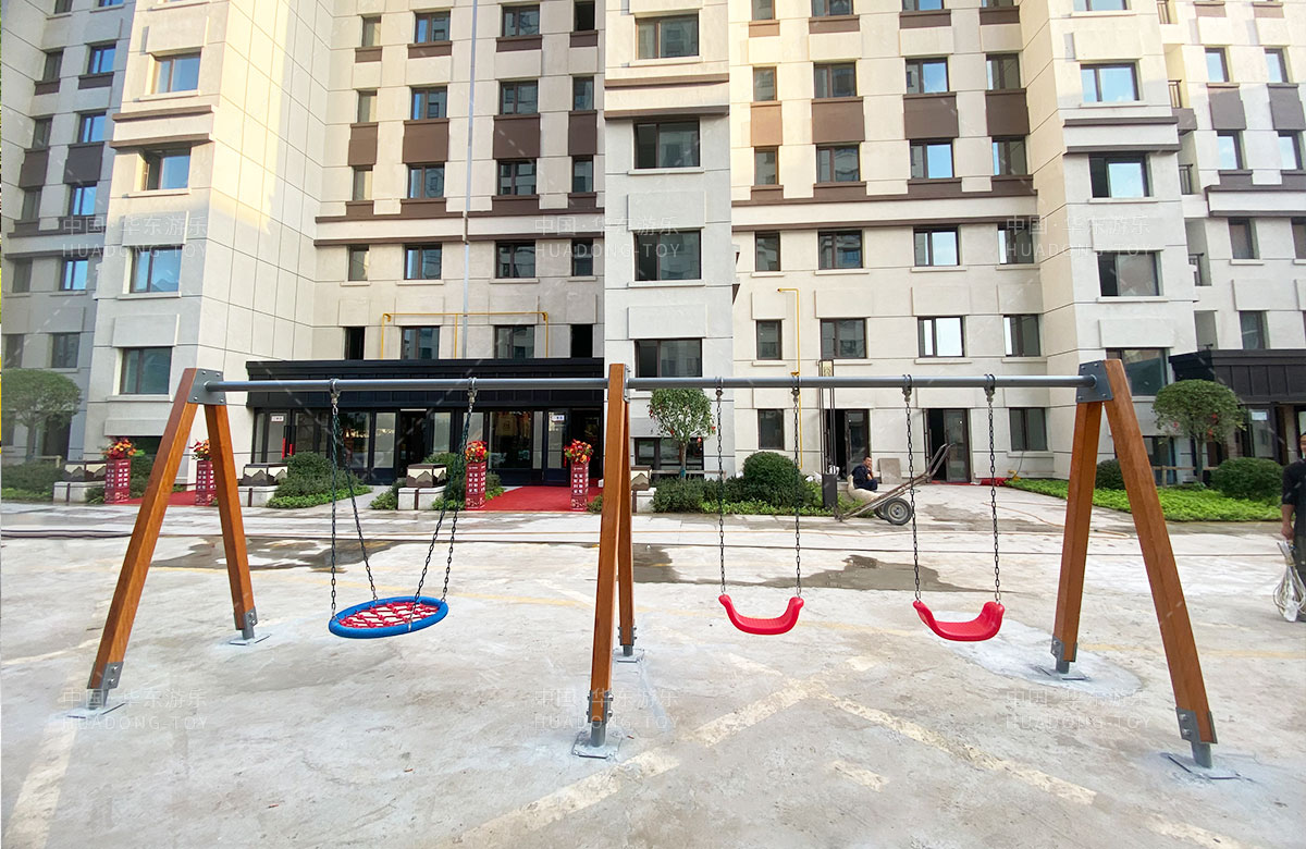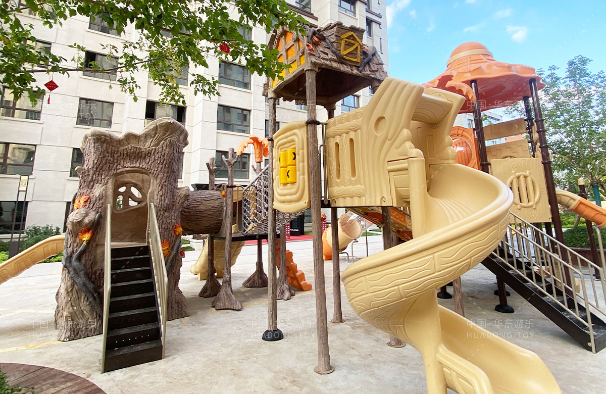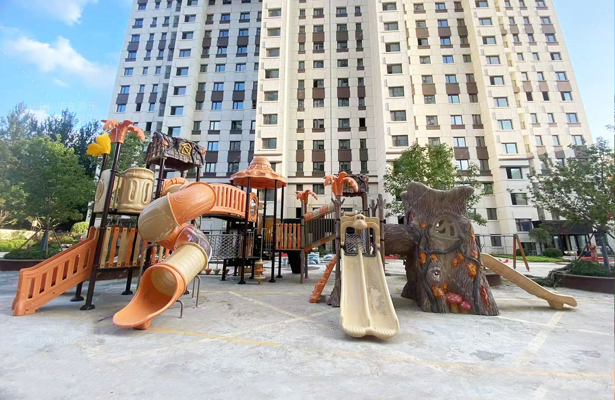 哈尔滨市南岗区学府选用的是333体育游乐自主研发和设计的远古部落系列的组合滑梯,该滑梯具有功能齐全、玩耍多样、使用寿命长等特点,除此之外还增加了儿童跷跷板、儿童秋千等儿童游乐设备,不仅仅丰富了孩子们的玩耍场所,也小区的生活增添了更多的生机与活力。