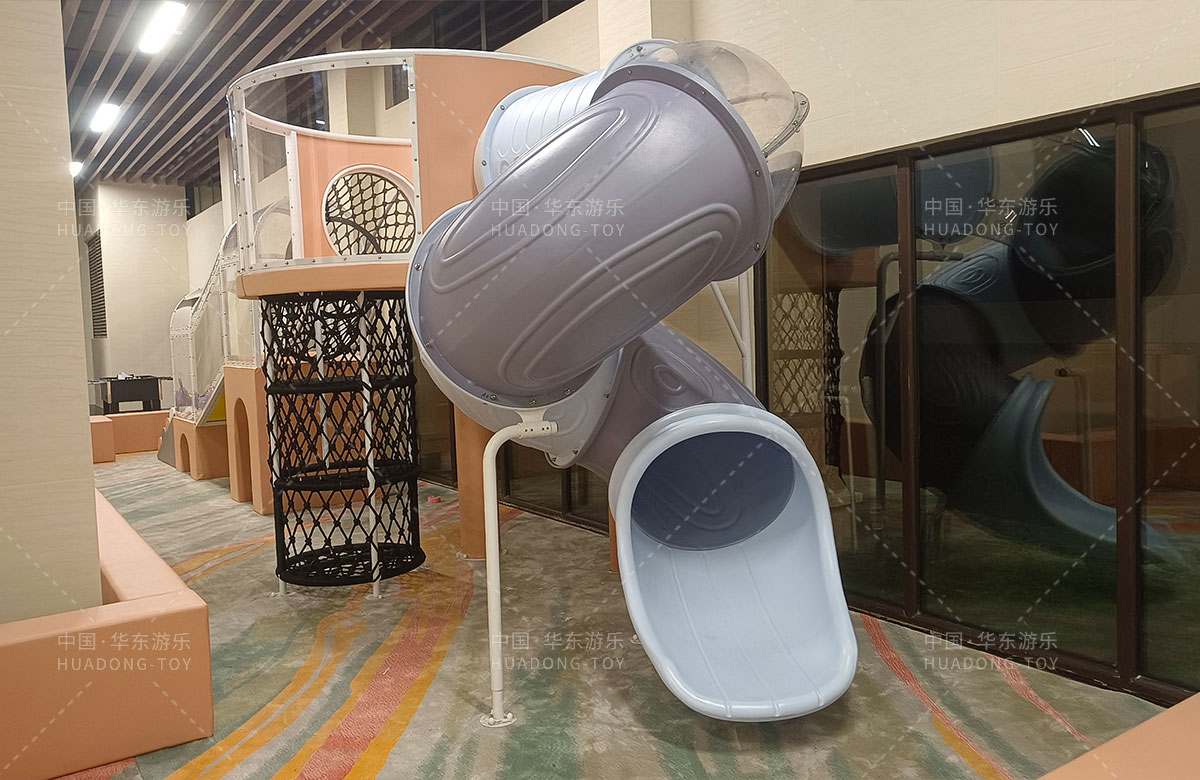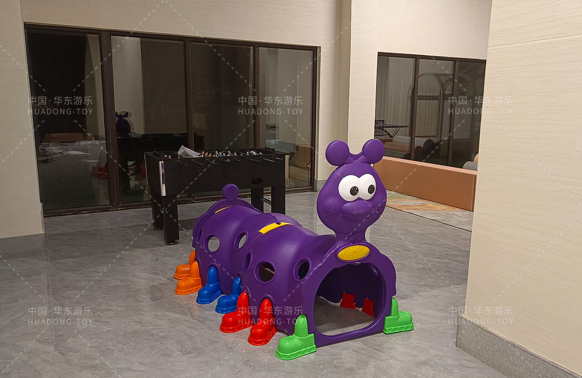 该项目选用的是333体育游乐生产的室内淘气堡系列产品,整套设备集合了攀爬网、钻洞、攀爬梯、旋转滑筒等功能,除此之外还设置了小朋友们喜欢的毛毛虫钻洞,儿童台球、乒乓球、桌面足球等设备,让整个售楼处变得更加的充满生机与活力。