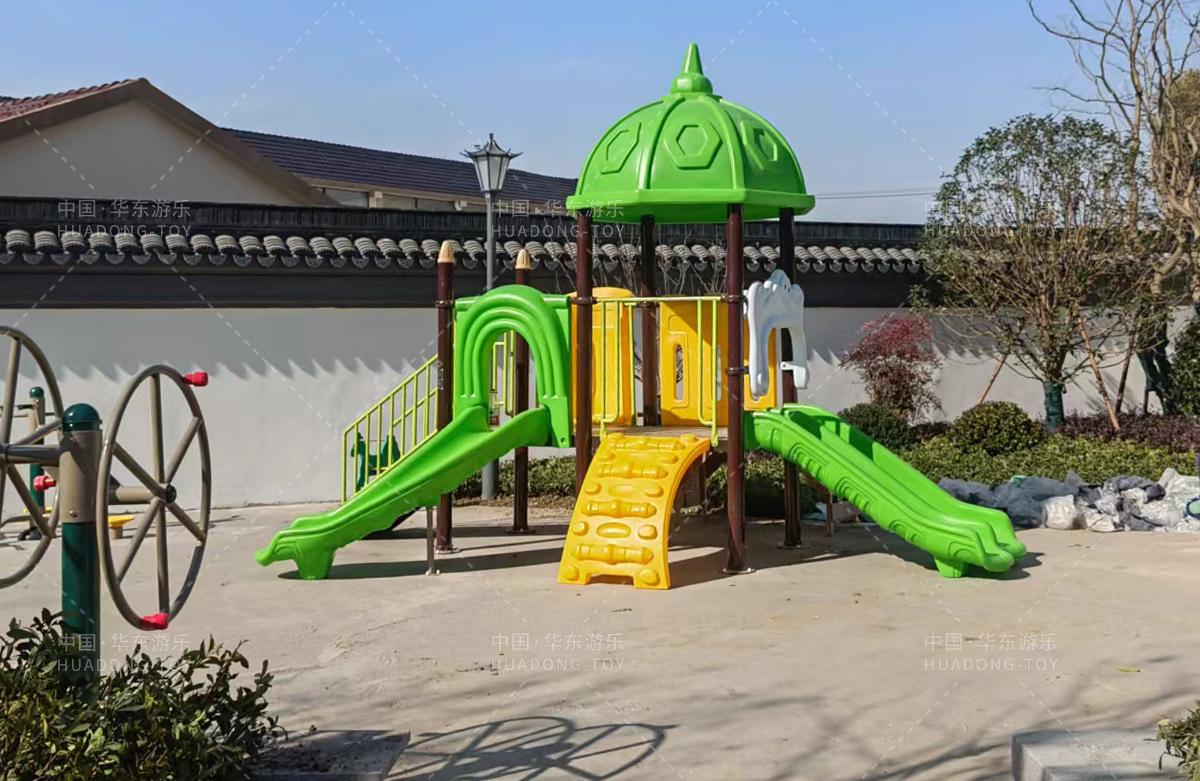 常州市桃花院子选用的是333体育游乐自主研发和设计的别墅屋系列组合滑梯,该滑梯采用滚塑一体成型,具有颜色艳丽、使用寿命长等特点,同时为了更好的为生活在该小区的人们服务,还设置了各种类型的健身器,以及小朋友喜欢的儿童跷跷板、儿童秋千和传声筒等游乐设备,不仅丰富了小区的生活,也为小朋友的玩耍提供了一个很好的场所。