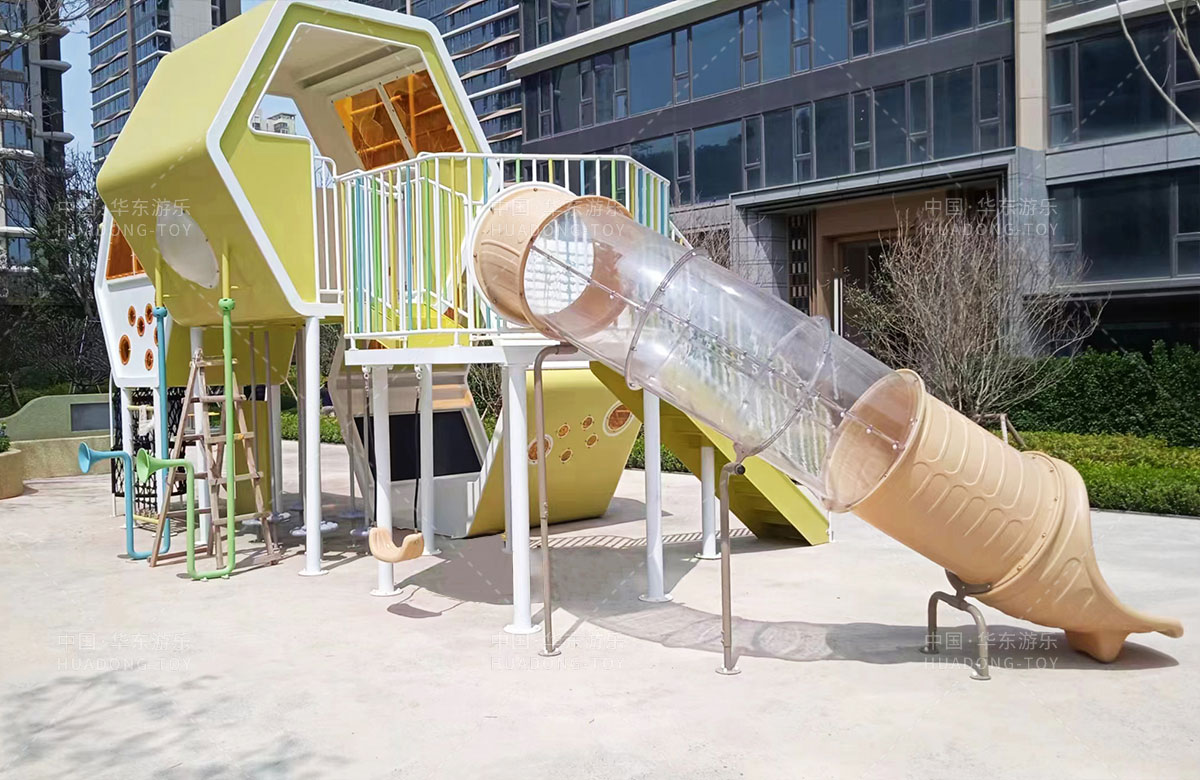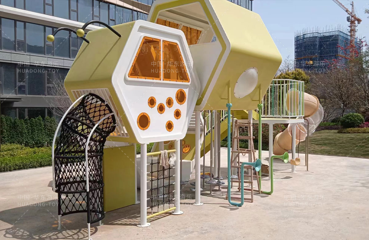 该项目选用的是333体育游乐自主研发和设计的以蜜蜂巢穴为主题的游乐园,具备了大型滑梯、攀爬网、传声筒、儿童秋千、平衡杆等功能,同时为了更好的关注老年人的晚年健康,该项目还设计了不同功能的成人健身器,让更多的人群有一个休闲、娱乐、健身的场所。