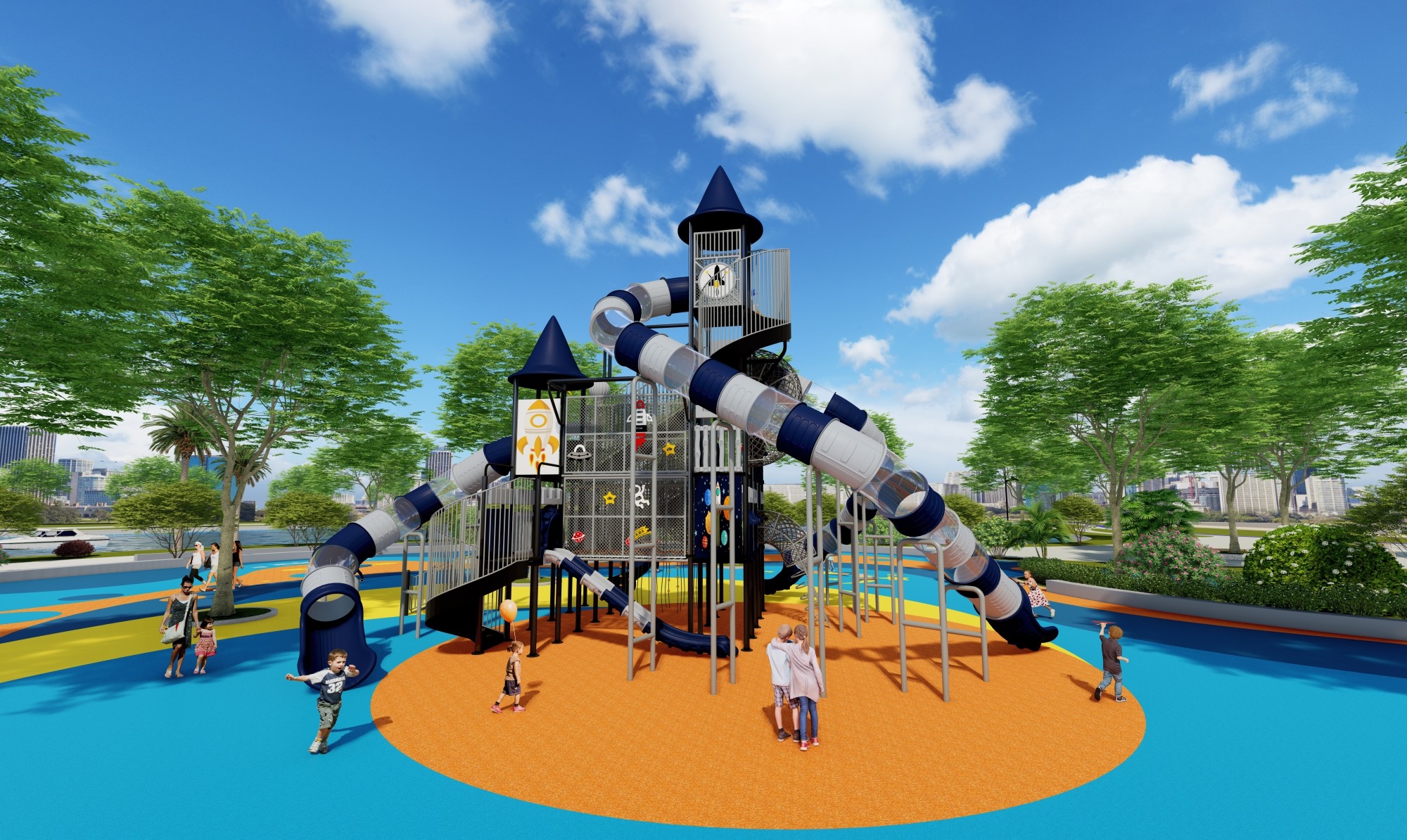 主题公园、学校、房地产小区、市政广场、超市、酒店等