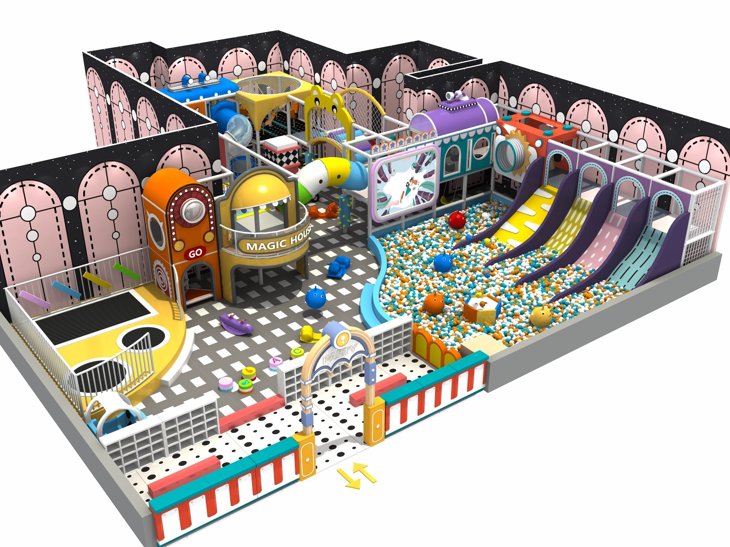 • 室内淘气堡又称室内儿童乐园,是针对儿童生理能力与心理特点喜欢钻、爬、滑、滚、晃、荡、跳、摇等玩耍动作而设计的综合性室内休闲娱乐场所。333体育游乐淘气堡项目具有多样性、互动性和安全性的特点,儿童在玩乐的同时能培养独立的个性,团队协作能力,沟通能力、克服困难、积极进取的精神,锻炼身体、健脑益智。