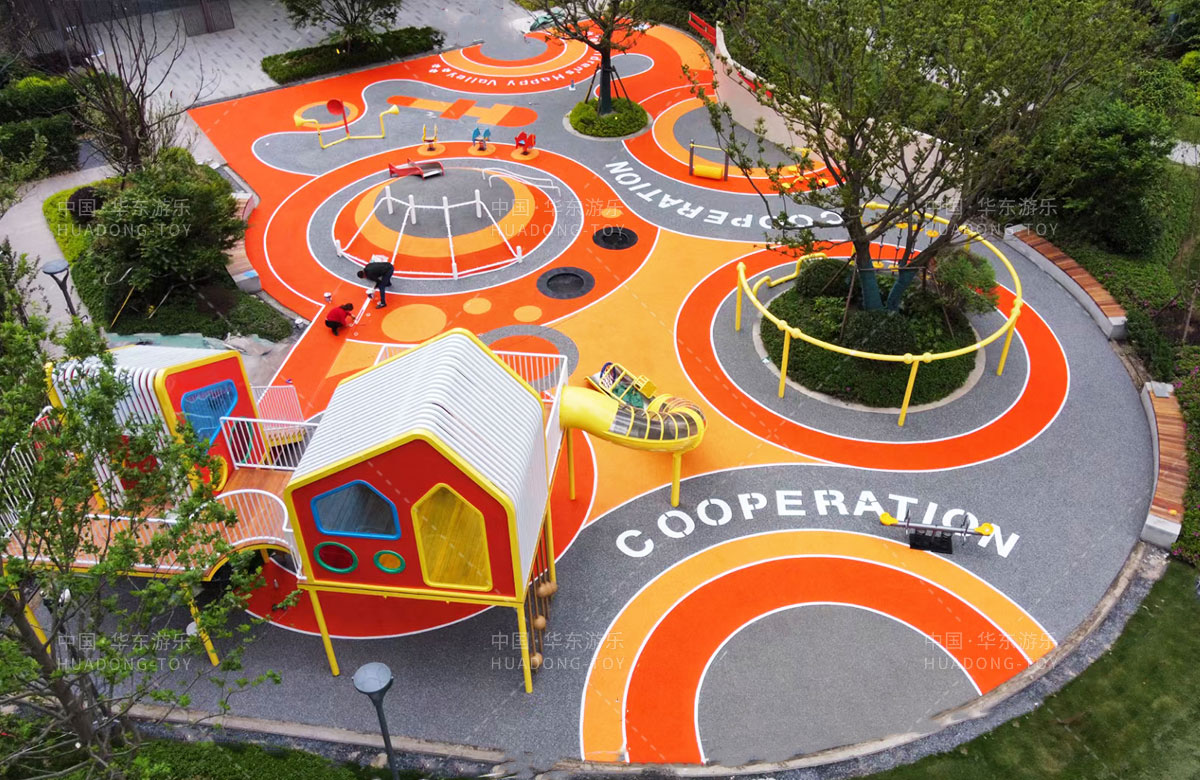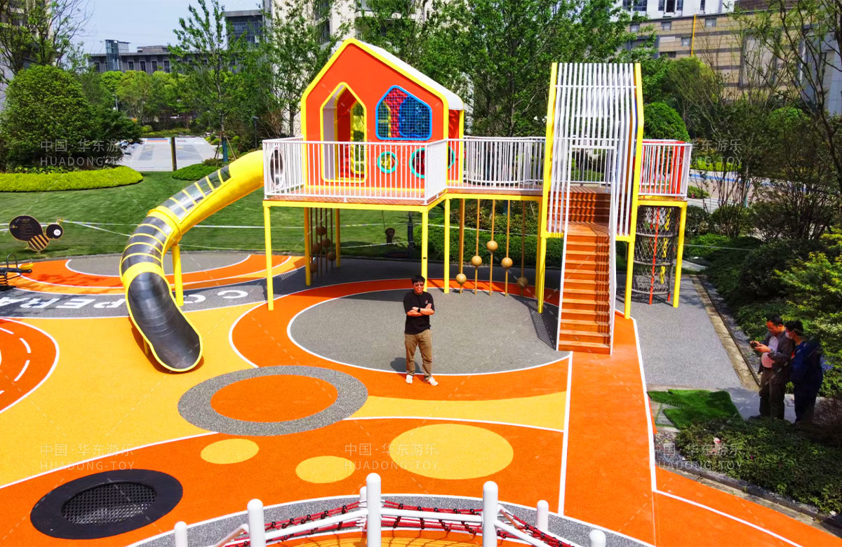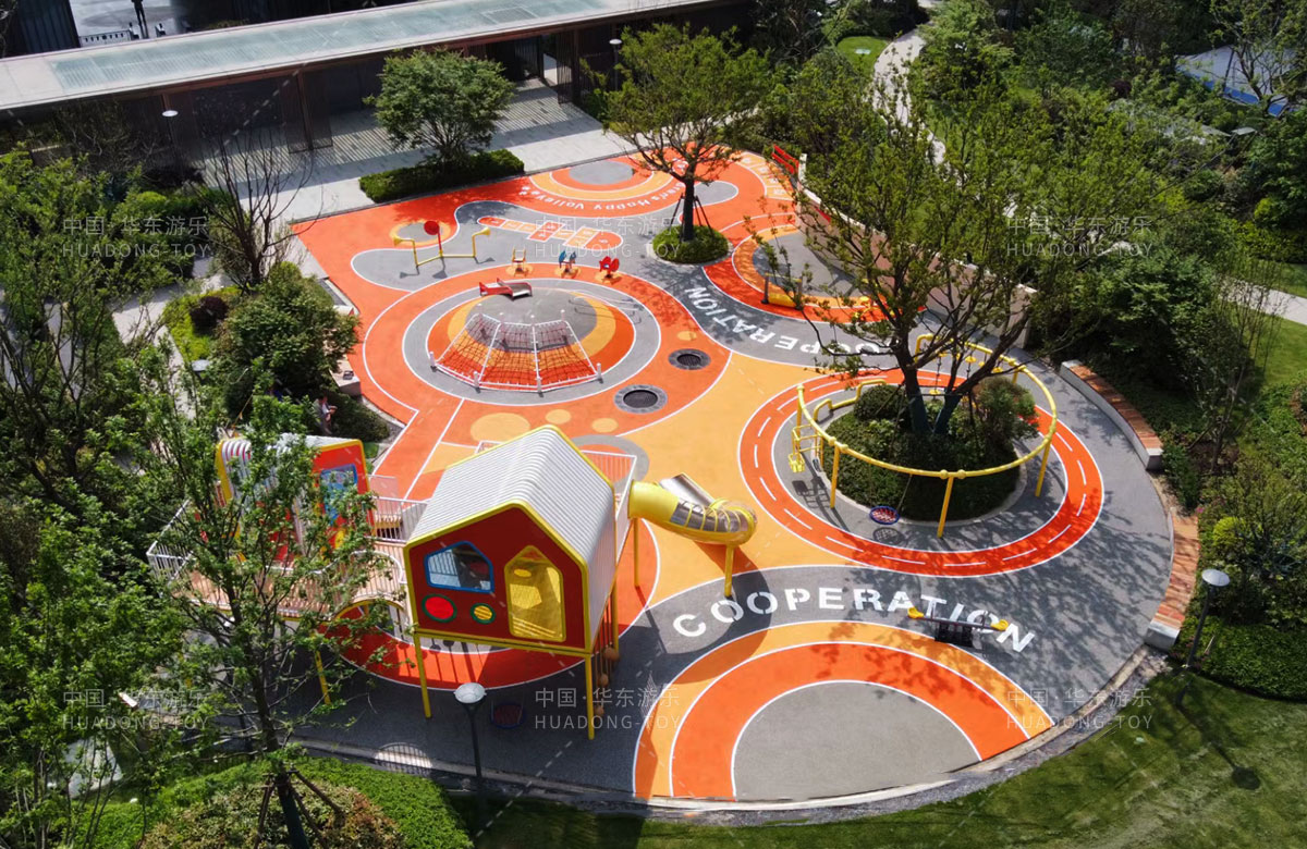 江阴朗诗新郡选用的是由333体育游乐自主研发和设计的以游戏小屋为主题的非标定制游乐设备,该设备具备了攀爬杆、大型滑梯、卡通的造型、靓丽的颜色深受小朋友的喜爱,同时整个游乐场还设置了小朋友喜欢的儿童摇摇乐、传声筒、儿童跷跷板、攀爬网、不锈钢滑梯等游乐设备。