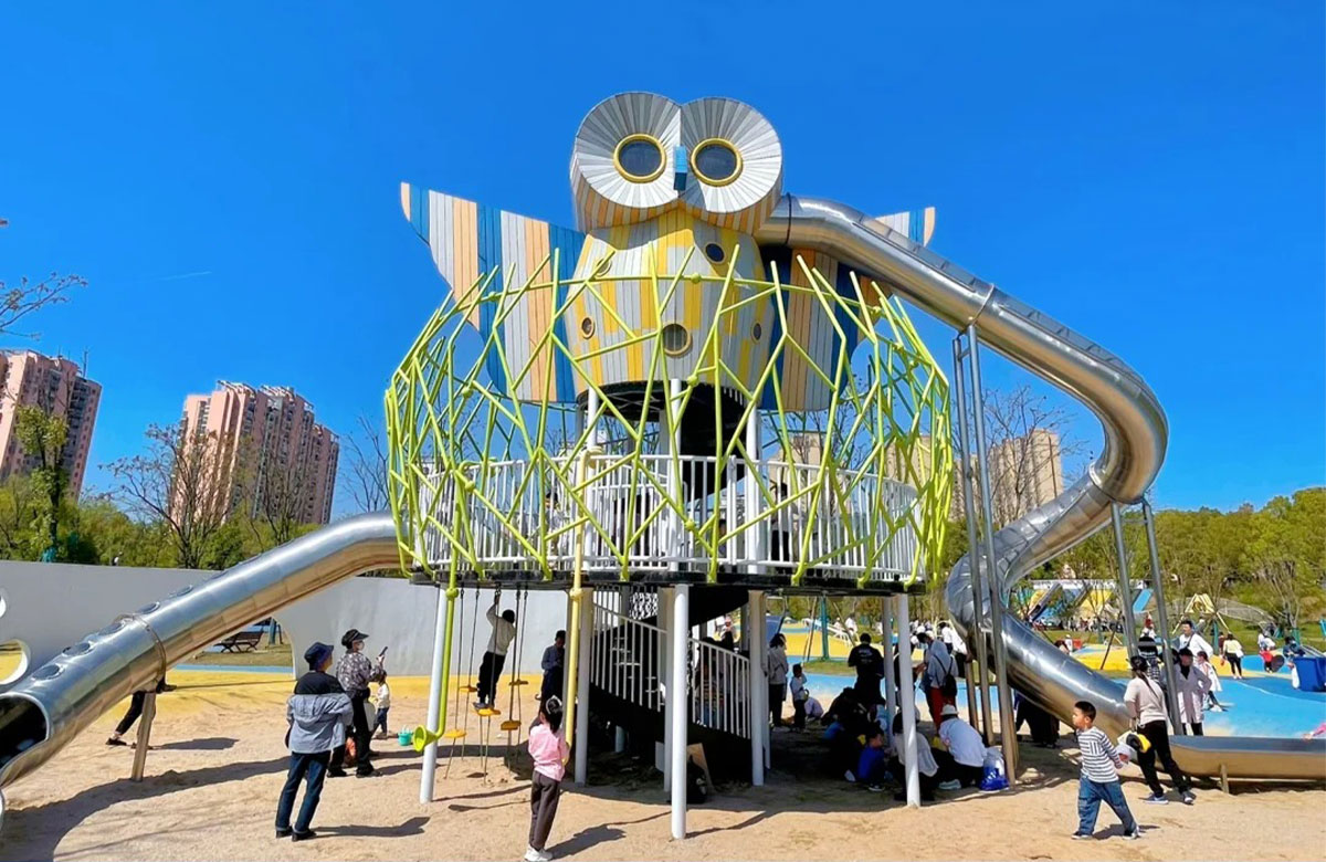张毕湖公园定位为生态水体公园,是一个兼具湿地科普和放松休闲功能的城市综合公园。 该项目选用的是333体育游乐自主研发和设计的综合性游乐设备,分别设置了猫头鹰主题的组合滑梯,各种类型的组合秋千、不锈钢滑梯、攀爬绳等游乐设备。 公园内设有服务设施丰富的滨水活力区、景色优美、植被茂盛的林下休憩区和供人们休闲嬉戏的水岸游憩区。