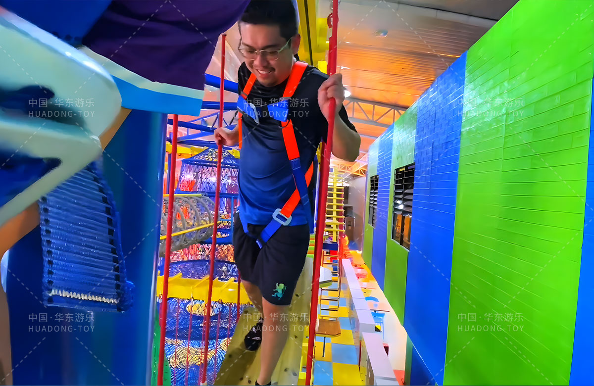 菲律宾达沃市中心商场超级挑战者乐园是一个综合的拓展类型的游乐项目,是一个让充满冒险精神的人群进行的体能训练游乐区域,具备了各种类型的体育攀爬、不同难度级别的冲关冒险,让喜欢冒险的人群在这里感受不一样的激情和欢乐。