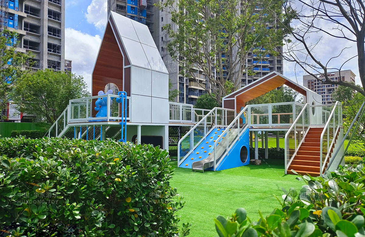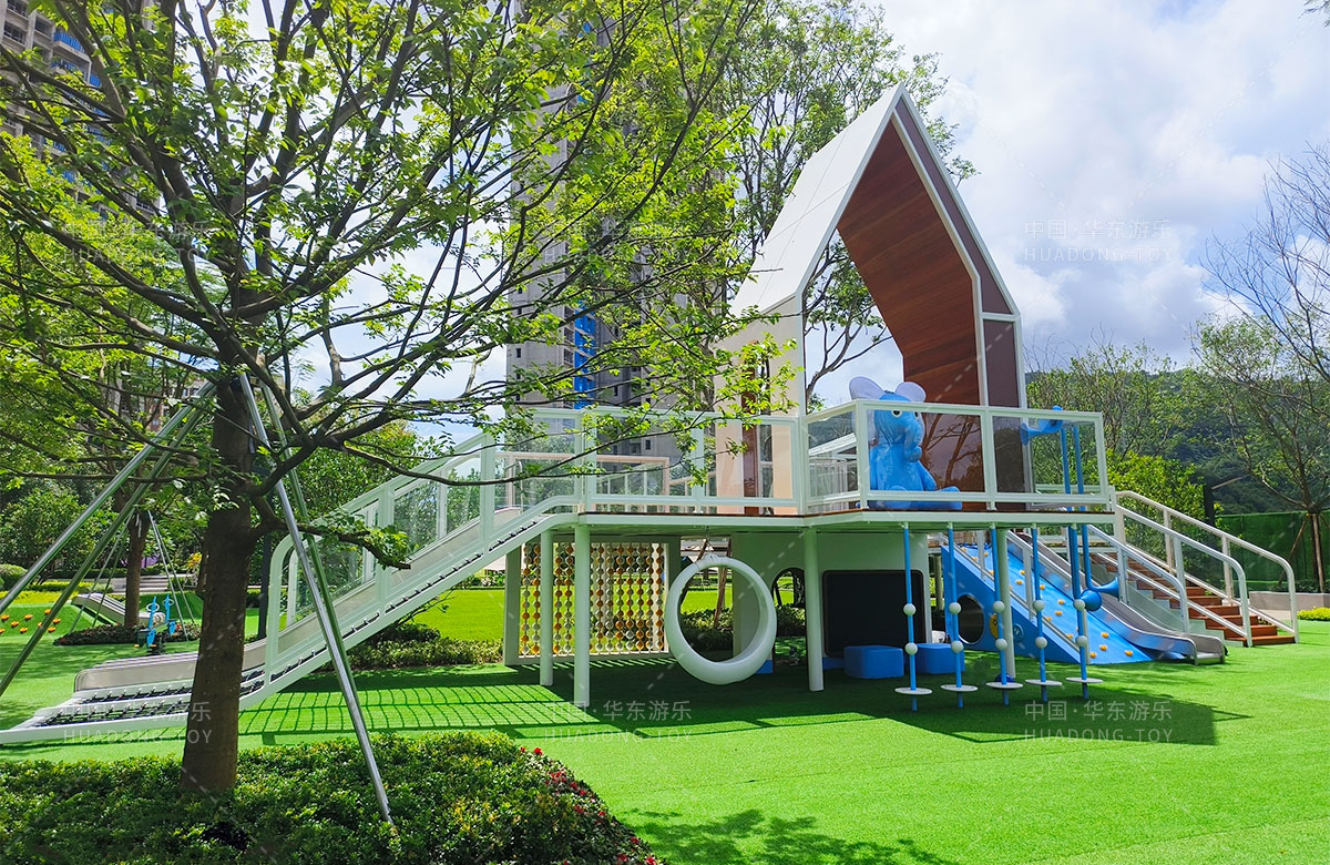• 广东惠州润溪花园是一个高端的生活小区,为了更好的 服务生活中当地的居民,完善小区的配套设施,该小区选用的一个以小象的田野乐园为主题的游乐园,齐全的功能、艳丽的颜色深受孩子们的喜爱,同时为了更好的为孩子们提供一个休闲娱乐的场所,整个游乐场还设置了小朋友喜欢的儿童摇摇乐、组合秋千、翻翻乐、攀爬网等游乐器械。