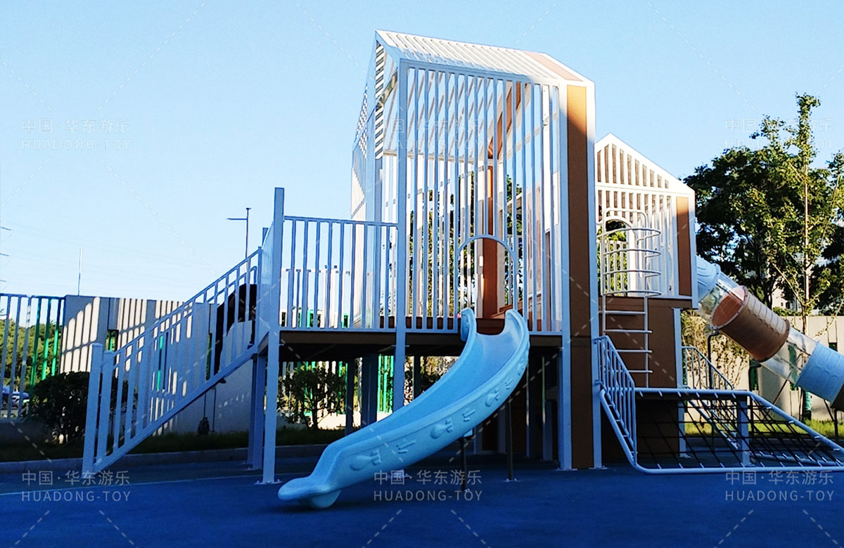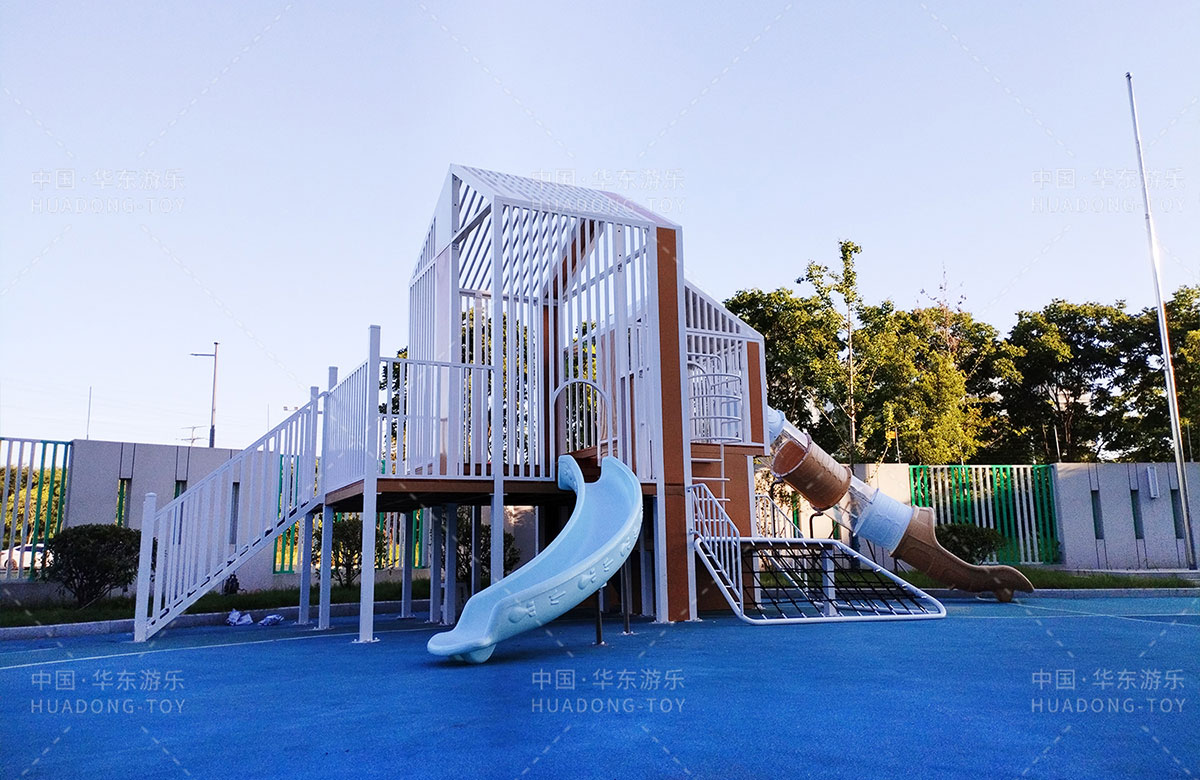 无锡市新吴区工博园幼儿园是一家专业性的学期教育学校,为了更好的让孩子们有一个玩耍的场地,让老师能够更好的提供教学的场地,学校选用了333体育游乐自主研发和设计的小屋系列组合游乐设备,该游乐设备具备了攀爬网、钻洞、滑梯、攀爬梯等功能,此设备的放置不仅仅丰富了校园的生活,也为老师的教育提供了帮助。