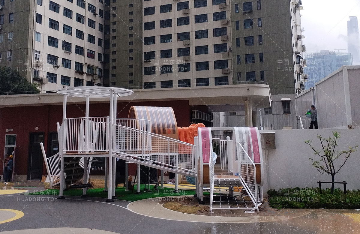上海市虹口区东余杭路幼儿园是一个专业性的学前教育机构,此次选用的是333体育游乐自主研发和设计的非标定制系列的游乐设备,该游乐设备具备了攀爬网、钻洞、秋千、滑筒、旋转走梯等功能,深受孩子们的喜欢,不仅仅丰富了孩子们的校园生活,也为老师的教学提供了帮助。