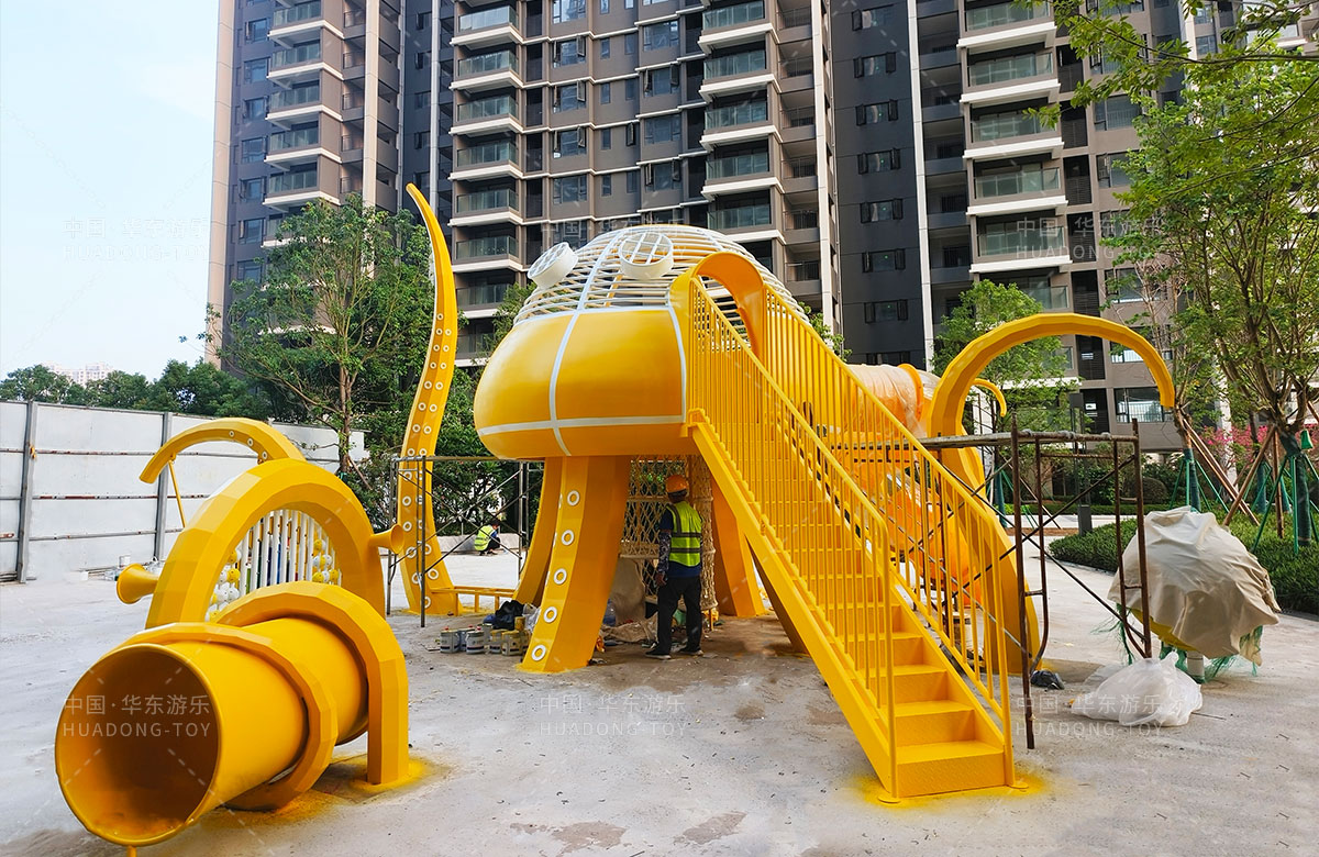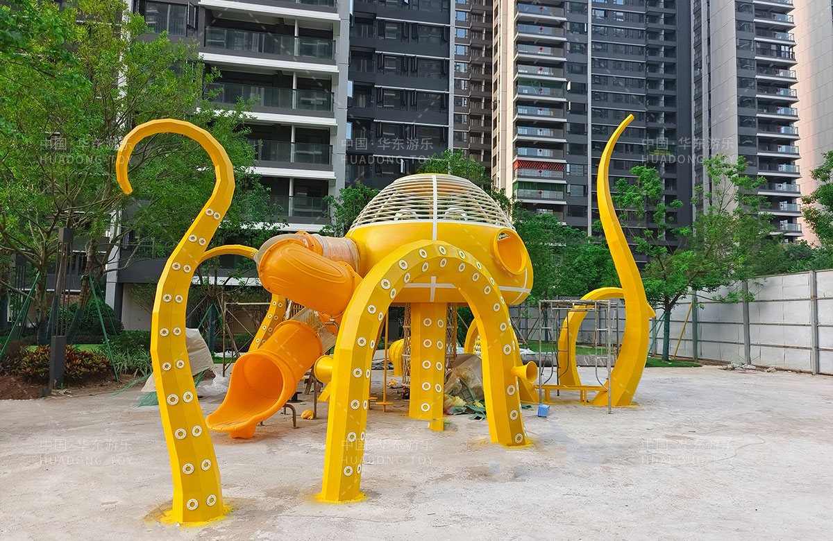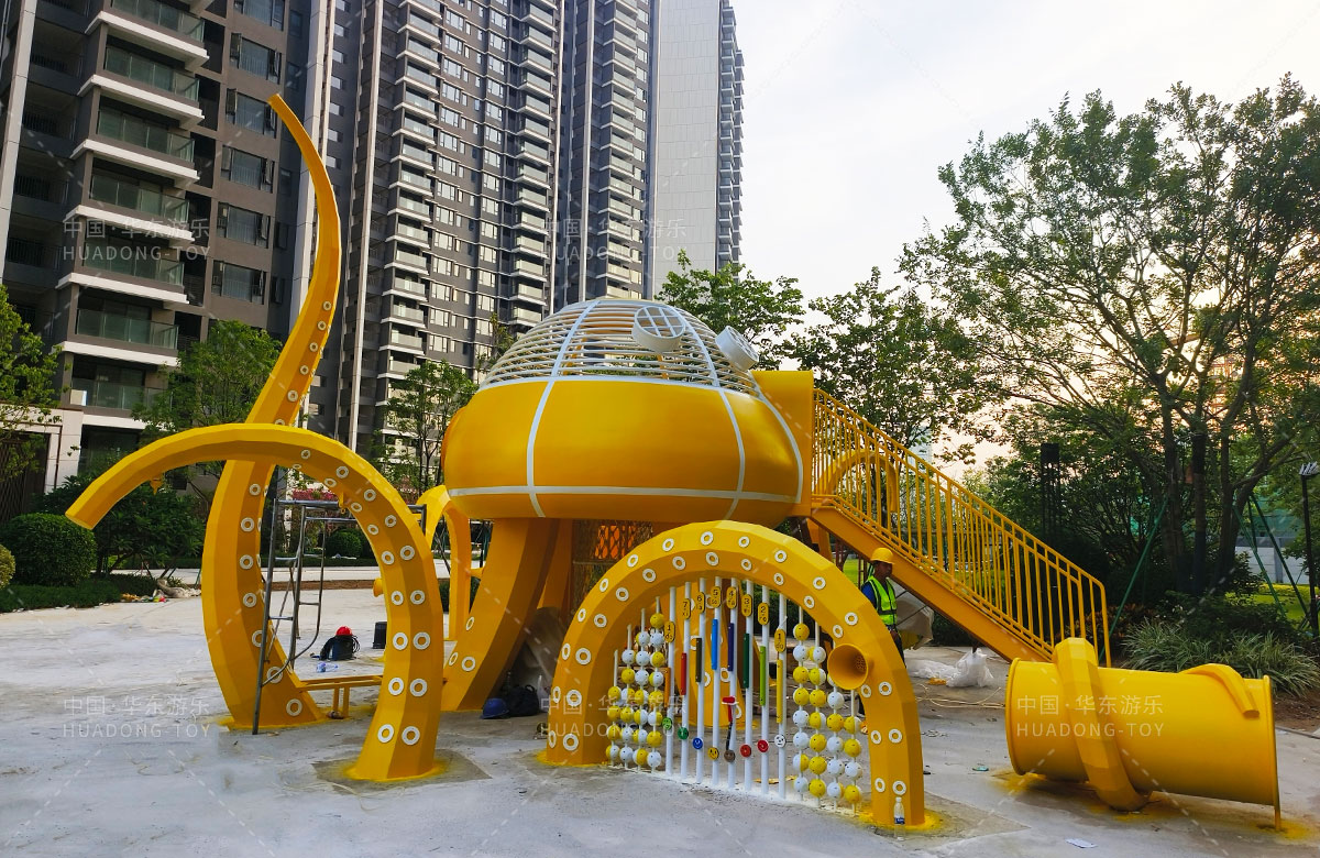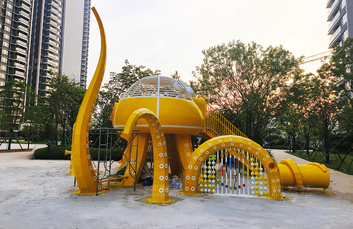 中海地产汕头阅江府选用的是333体育游乐自主研发和设计的以章鱼为主题而设计的非标定制的章鱼主题综合游乐园,整个游乐园用一个大型的章鱼设备为主题,设计了集钻洞、攀爬网、滑梯、打击乐器等功能为一体的综合性游乐设备,为生活在当地的人群提供了一个休息娱乐的场所,也为小朋友们的健康成长提供了保障。