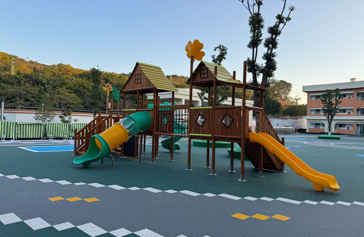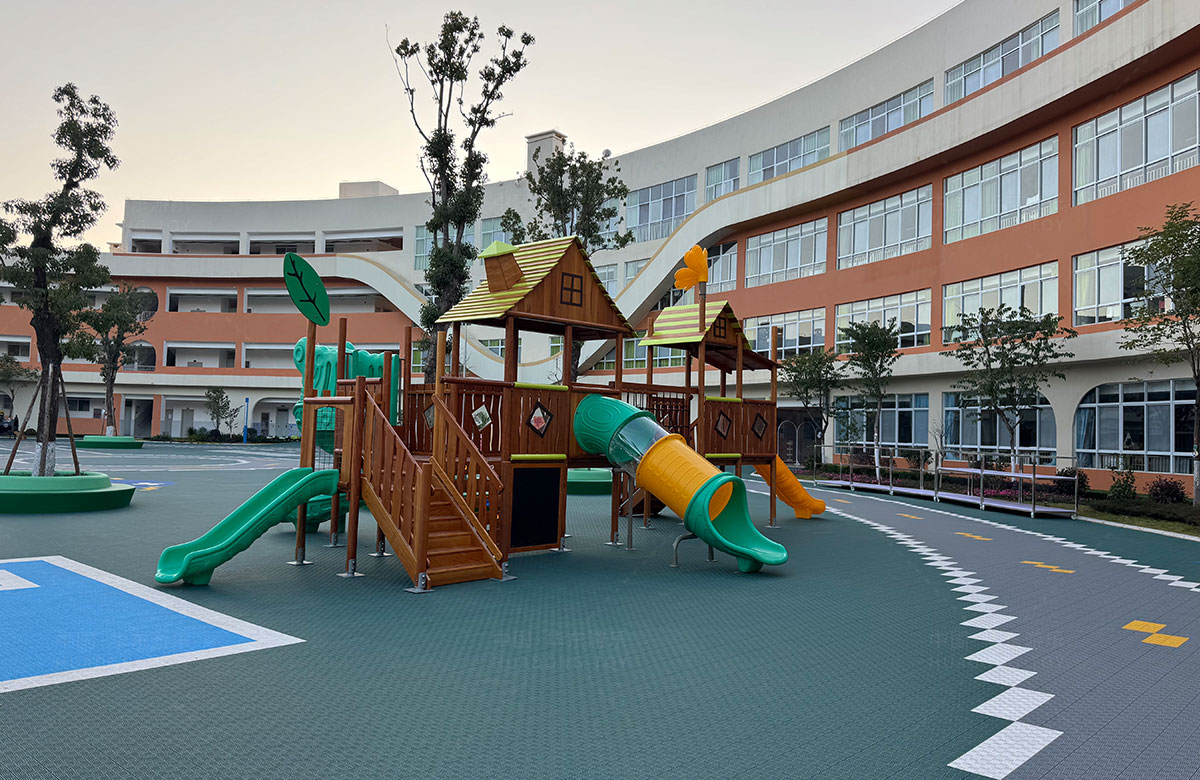 开远市凤凰幼儿园是一所专业的学前教育机构,此次选用的游乐设备是333体育游乐自主研发和设计的木质主题系列组合滑梯,该滑梯具备了攀岩墙、攀爬网、直行滑梯、旋转滑梯、直行滑桶等功能,是一款非常适合小朋友玩耍的游乐设备,该游乐设备的设置不仅仅为孩子们提供了玩耍的场所,也为老师的教学带来了帮助。