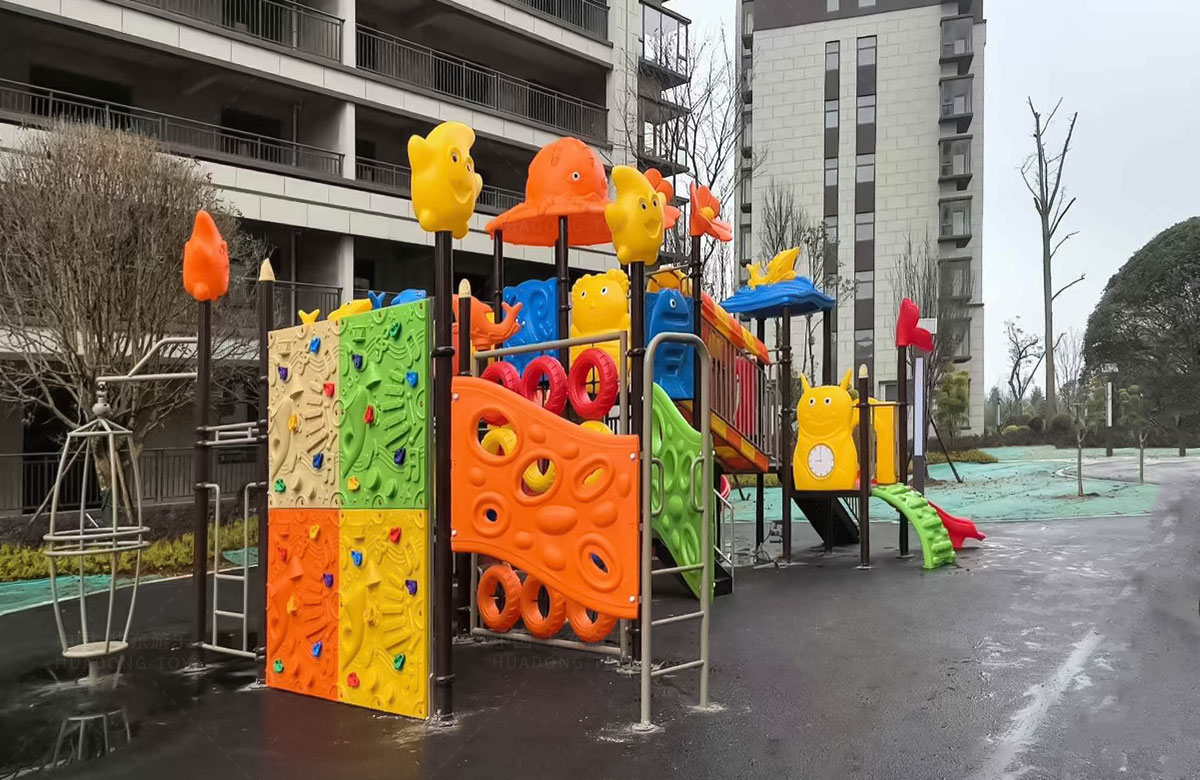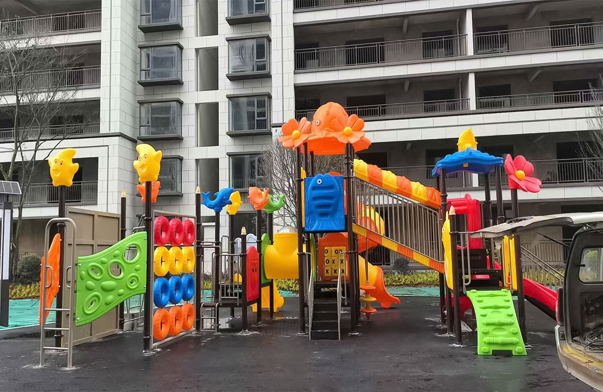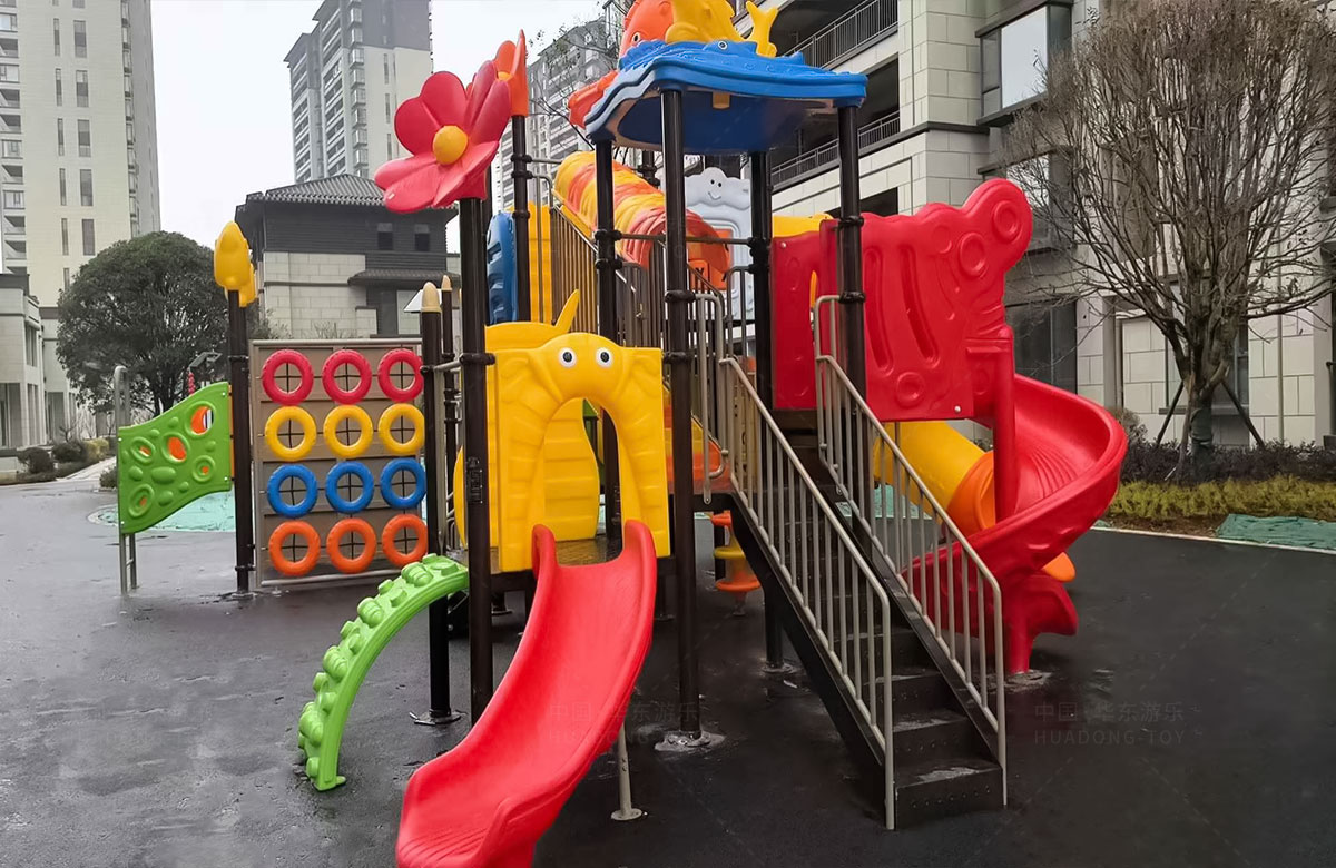 云南曲靖罗平县花海国际小区选用的是333体育游乐自主研发和设计的动物系列组合滑梯,该滑梯具有功能齐全、玩法多样,深受孩子们的喜爱,除此之外还是一款颜色艳丽、使用寿命长等特点。