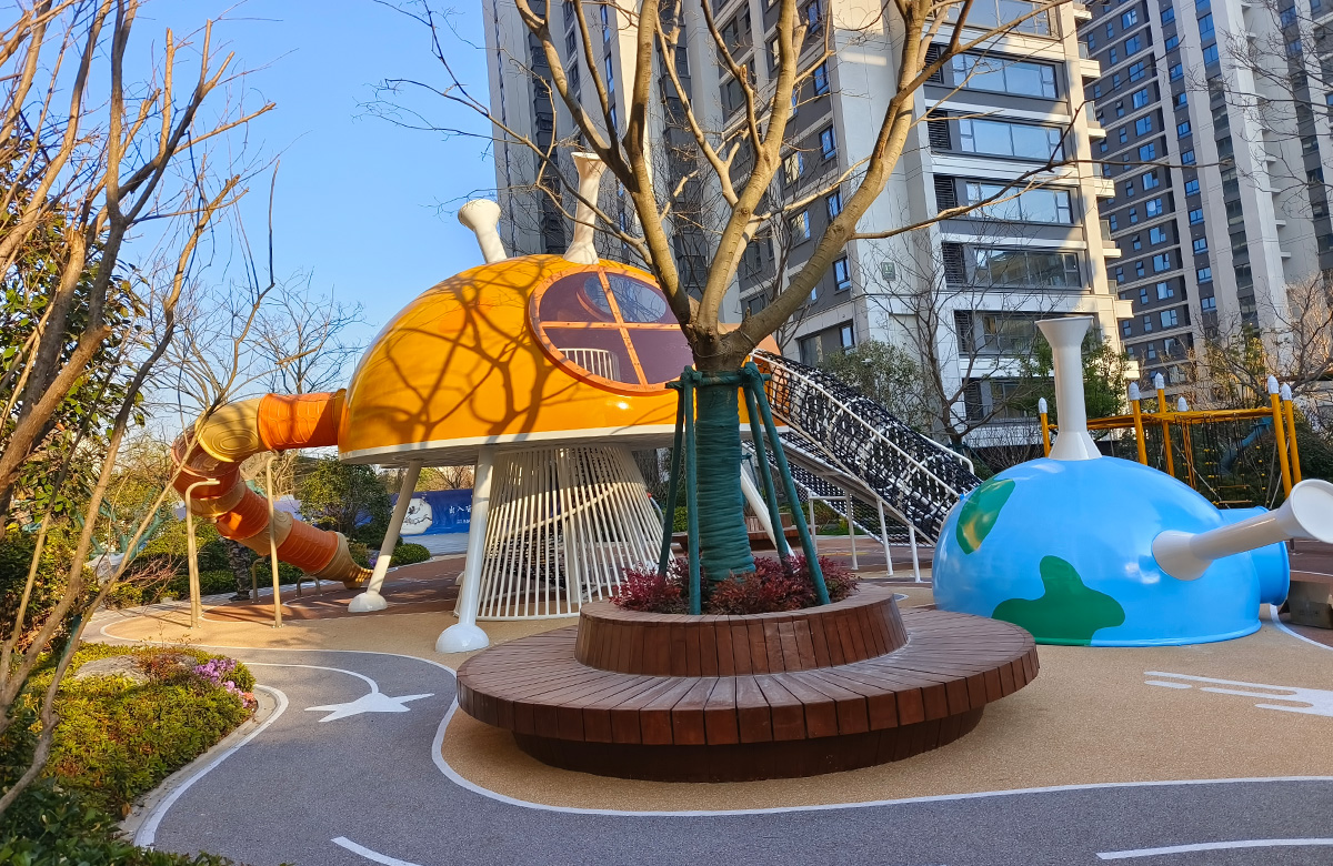 江苏镇江市中海丹阳臻如府精心打造了一片充满童趣的儿童游乐设施区,专为小朋友们设计。这里设置了丰富多彩的游乐项目,包括组合秋千,让孩子们在秋千的起伏中享受飞翔的快乐;旋转座椅,随着轻柔的旋转带来无尽的欢笑;还有独特的飞碟主题设备,激发孩子们探索宇宙的好奇心。整个游乐区安全舒适,为孩子们提供了一个寓教于乐的欢乐天地。